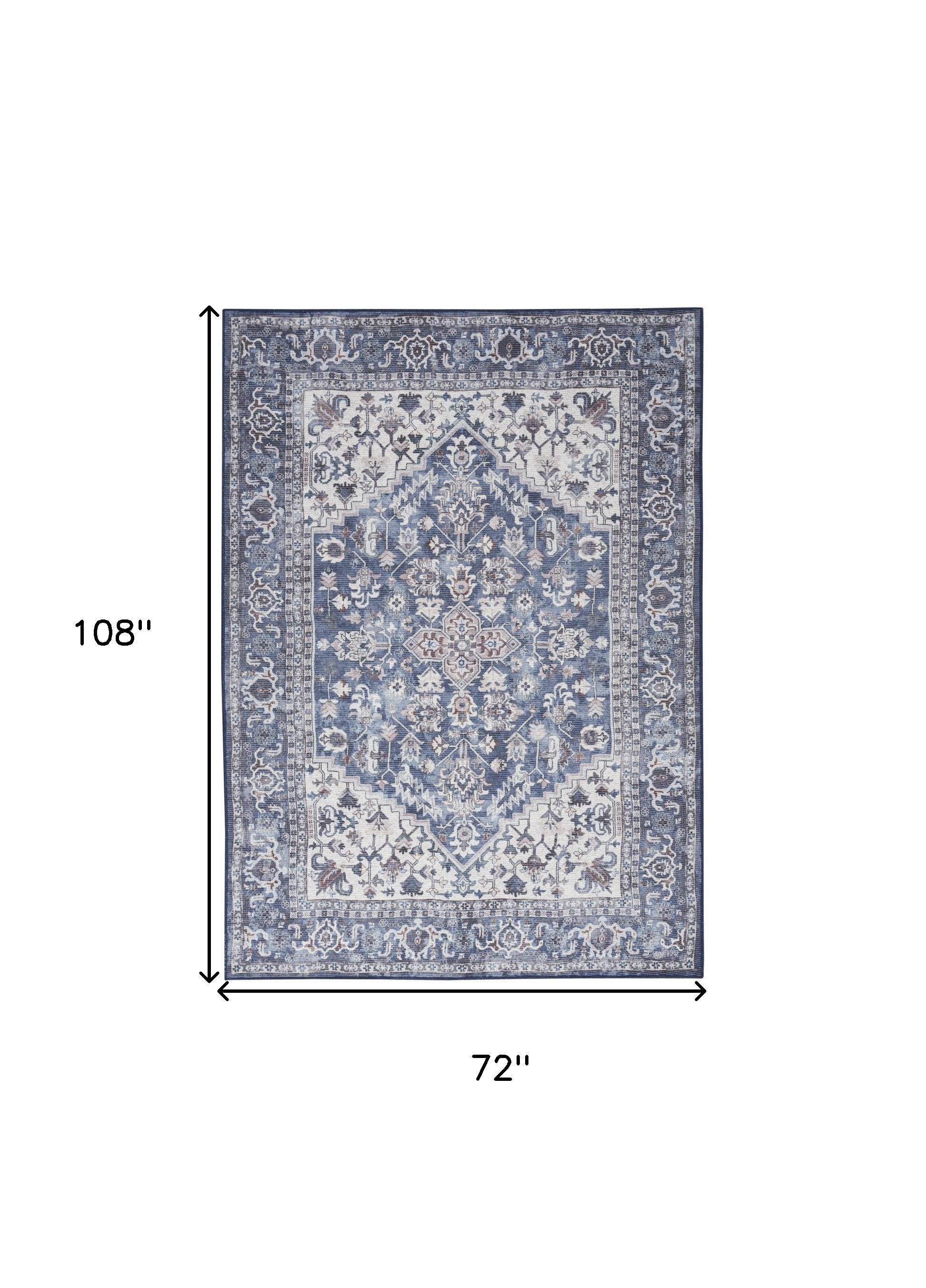 6' X 9' Gray Floral Power Loom Distressed Washable Area Rug