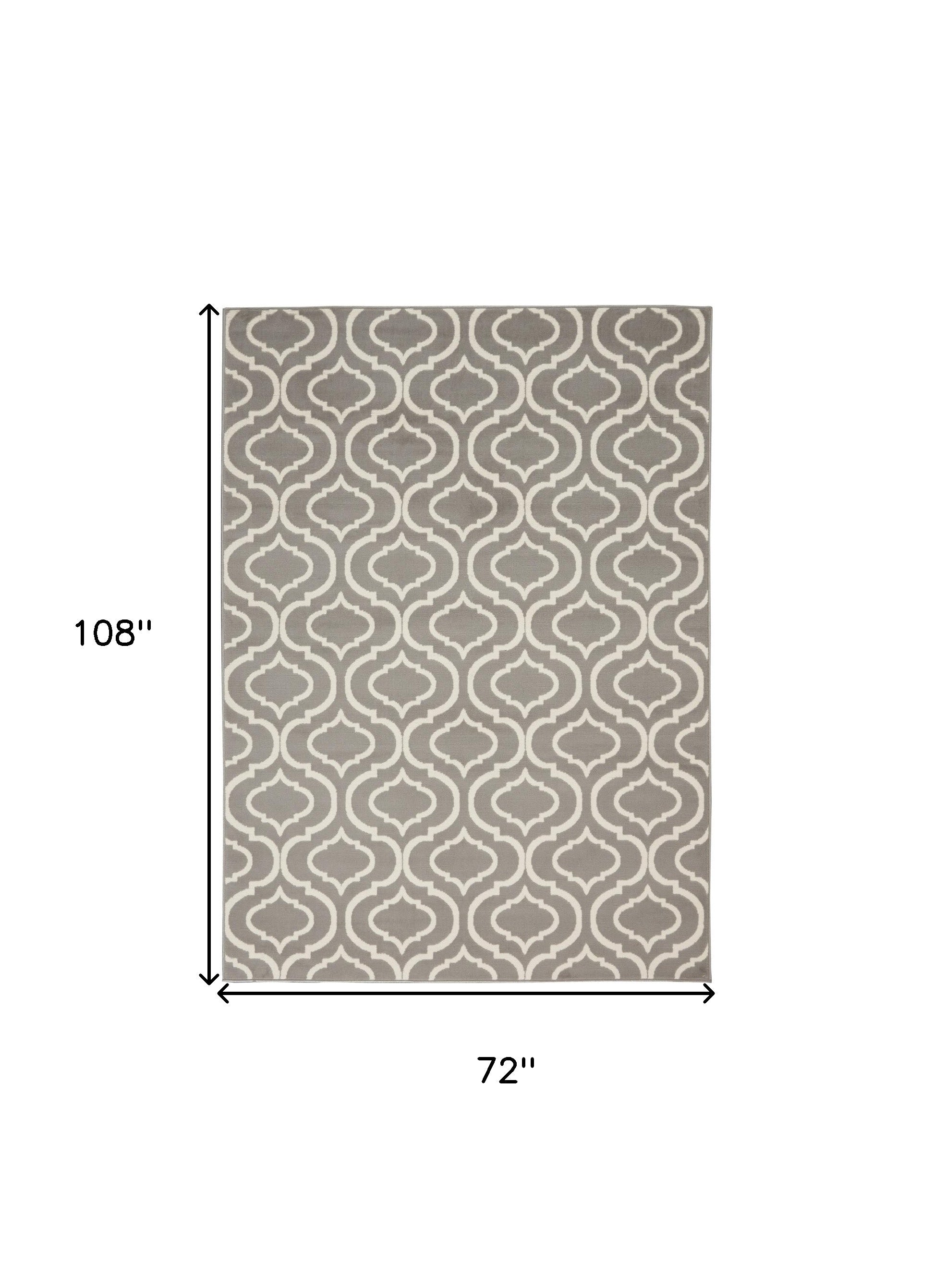 Add some artistry to your room with this 6' x 9' gray moroccan power loom area rug. This rectangle shaped rug features a moroccan design in gray to give it visual interest. A classic shape marries with good looking design for your space The coloring of this rug adds a delightfully neutral tone to your home and will easily match with most any decor. This superior Turkish rug represents the highest quality and is built to last. Area Rugs help to give warmth and sense of home to your space. .50" H x 72.00" W x 108.00" D