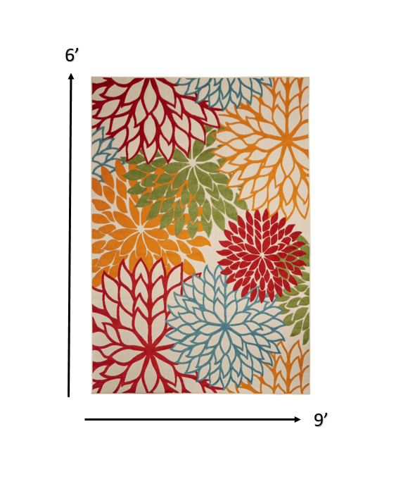 6' X 9' Green And Ivory Floral Indoor Outdoor Area Rug