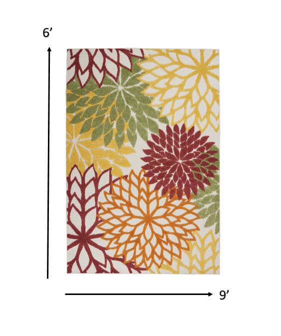 6' X 9' Green And Ivory Floral Indoor Outdoor Area Rug