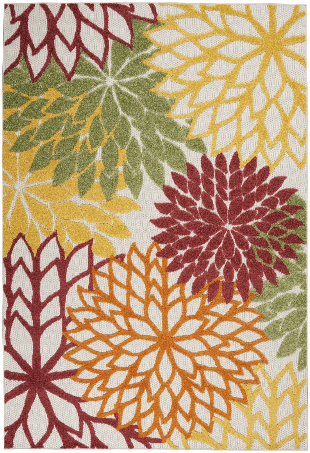 Set an inviting tone in your space with this 6' x 9' red multi colored floral indoor outdoor area rug. This rectangle shaped rug features a floral design in red multi colored to give it visual interest. A classic shape marries with good looking design for your space This superior Turkish rug represents the highest quality and is built to last. Place this area rug against a hardwood or tile floor and it will enliven your living space with style and sophistication. 1" H x 72" W x 108" D