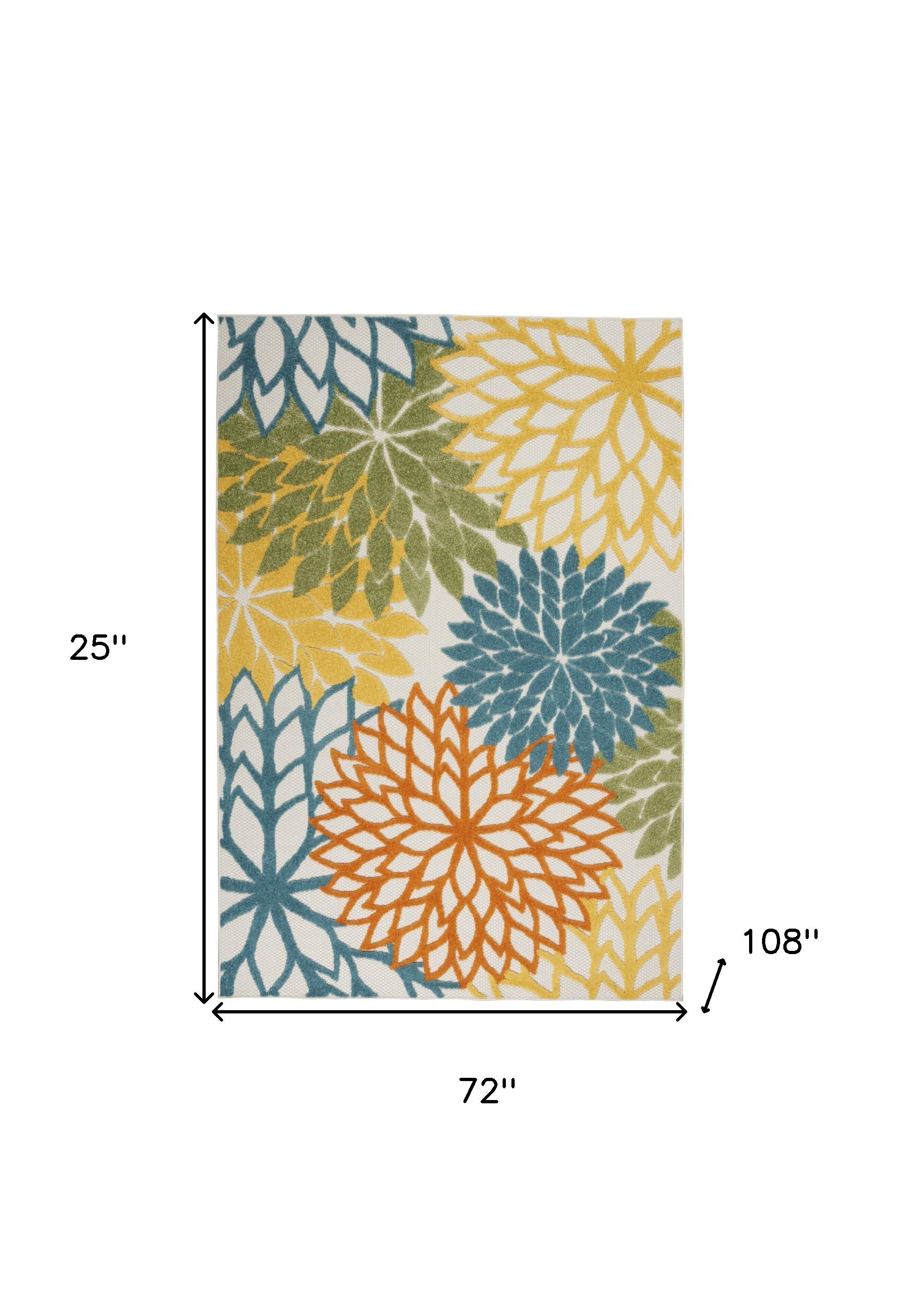 6' X 9' Turquoise Floral Non Skid Indoor Outdoor Area Rug
