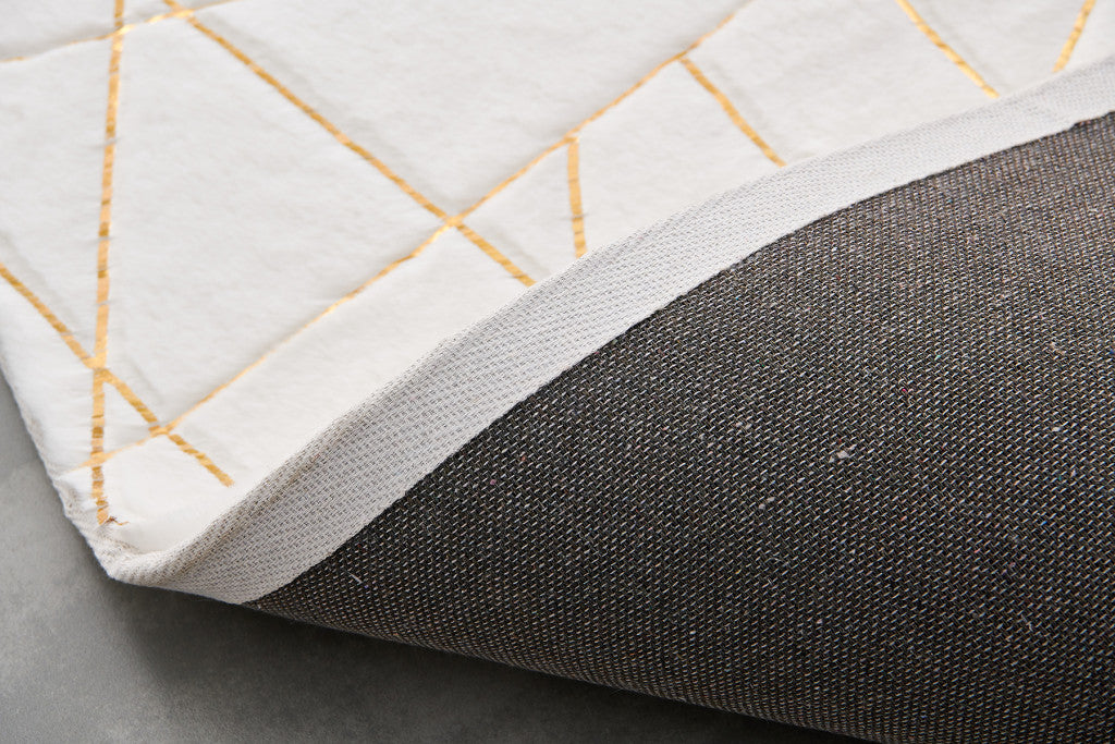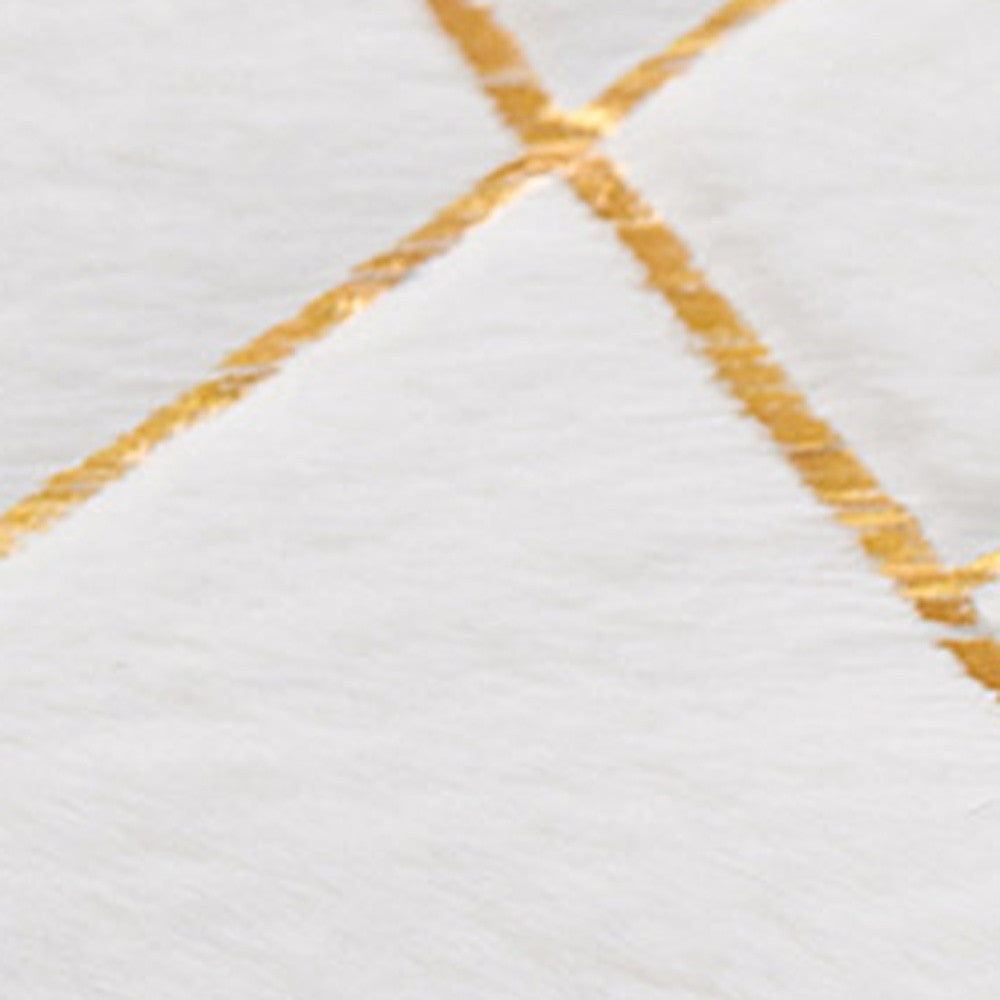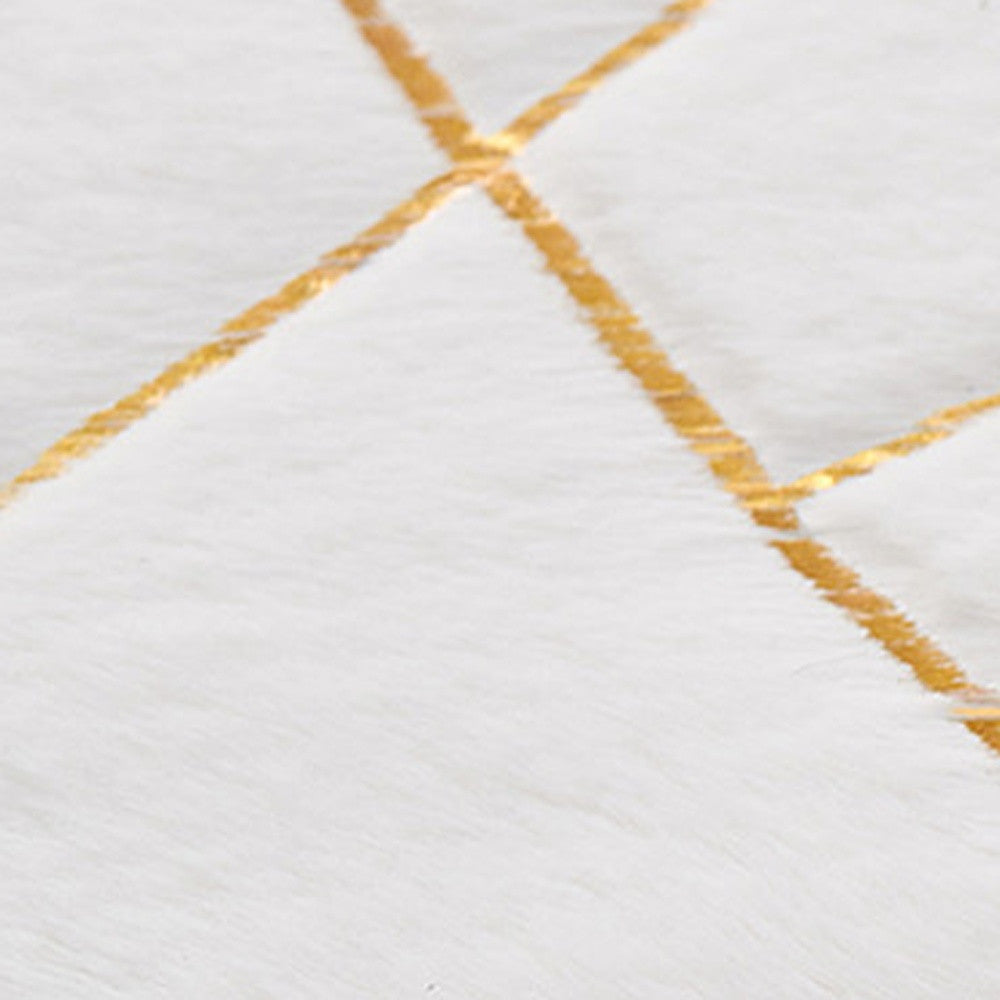 6' x 9' White and Gold Faux Sheepskin Abstract Geometric Machine Tufted Washable Non Skid Area Rug