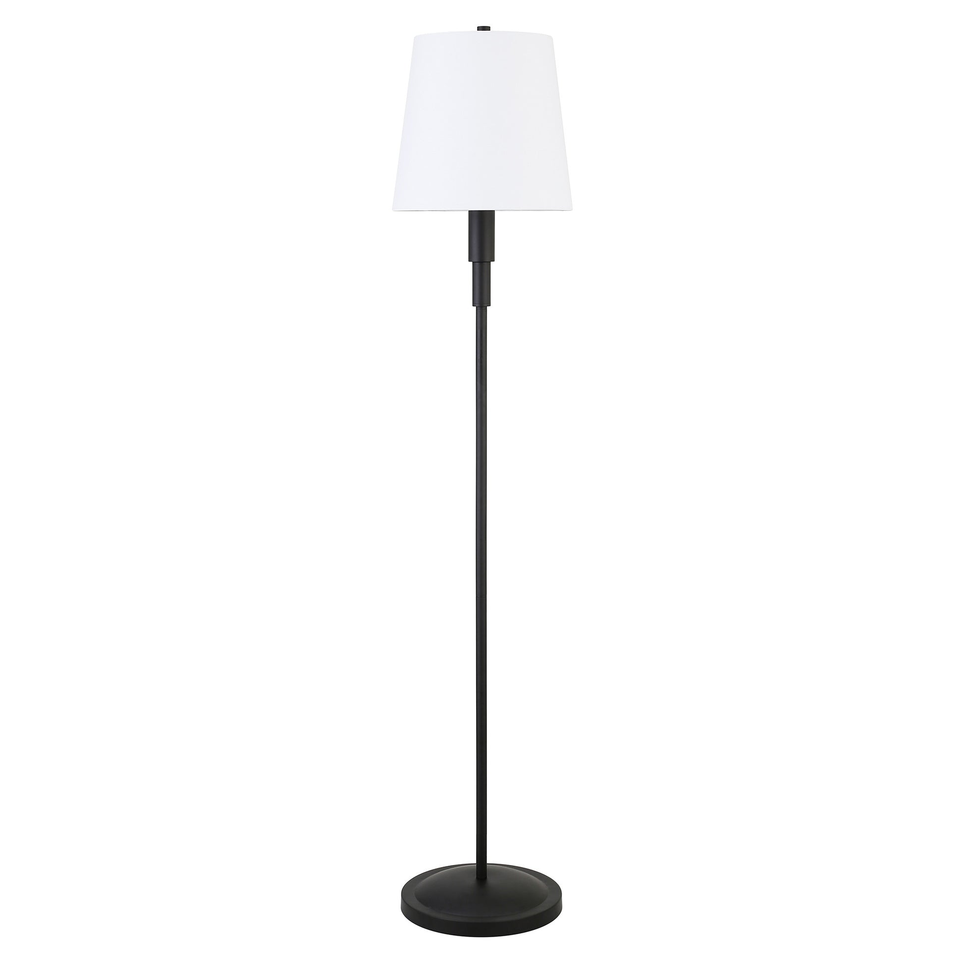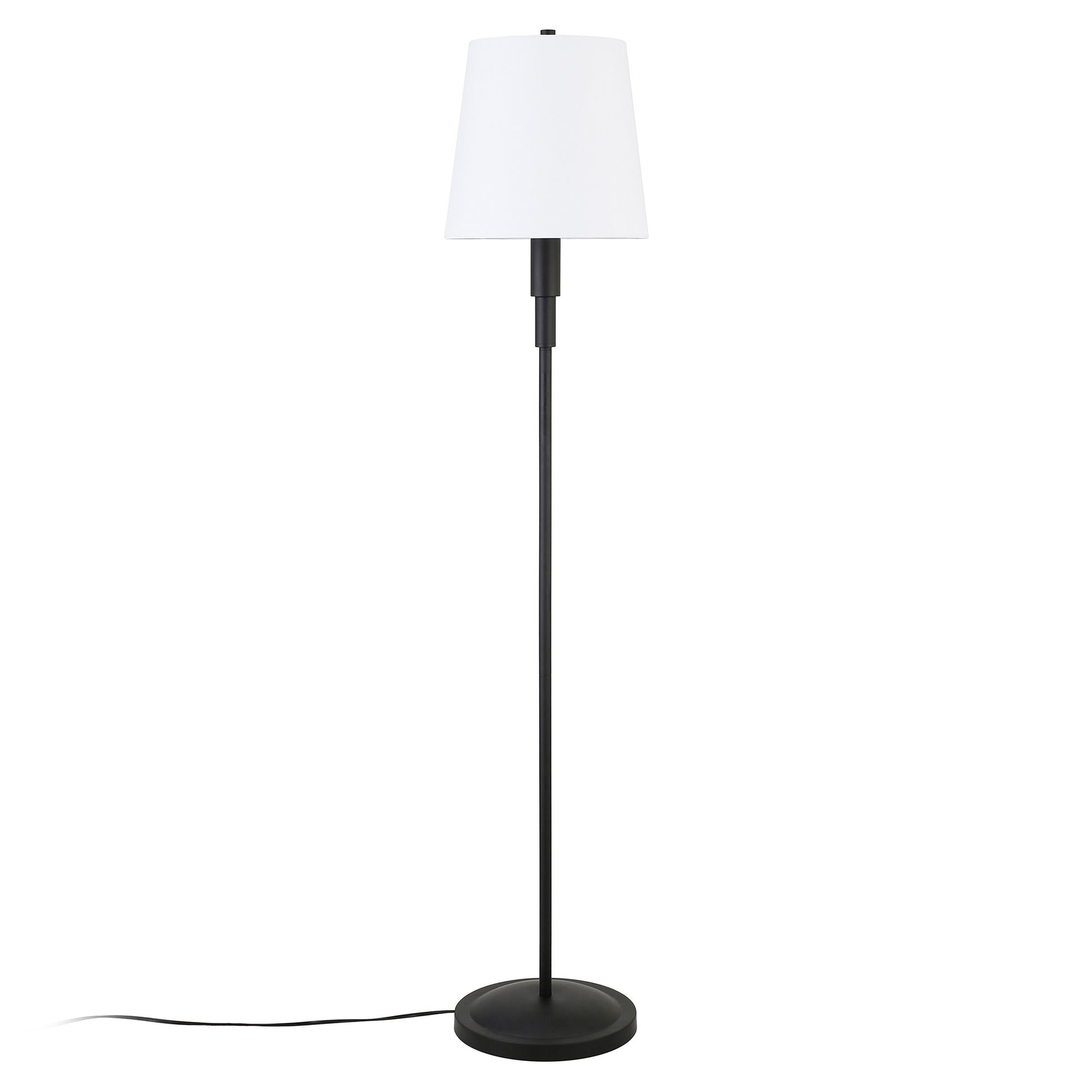 This 60" black traditional shaped floor lamp with white frosted glass drum shade is a great way to add some brightness to any corner of your home. The base of this lamp is made of metal finished in a black tone. The lamp shade has a drum shape and is made from fabric. Classically styled, this traditional lamp features a straight pole that extends upwards from a single base. The light that this lamp throws is soft and warm to elevate the look of most any space in your home. The perfect lamp to create just the right natural and soothing light in your space. 60" H x 12" W x 12" D
