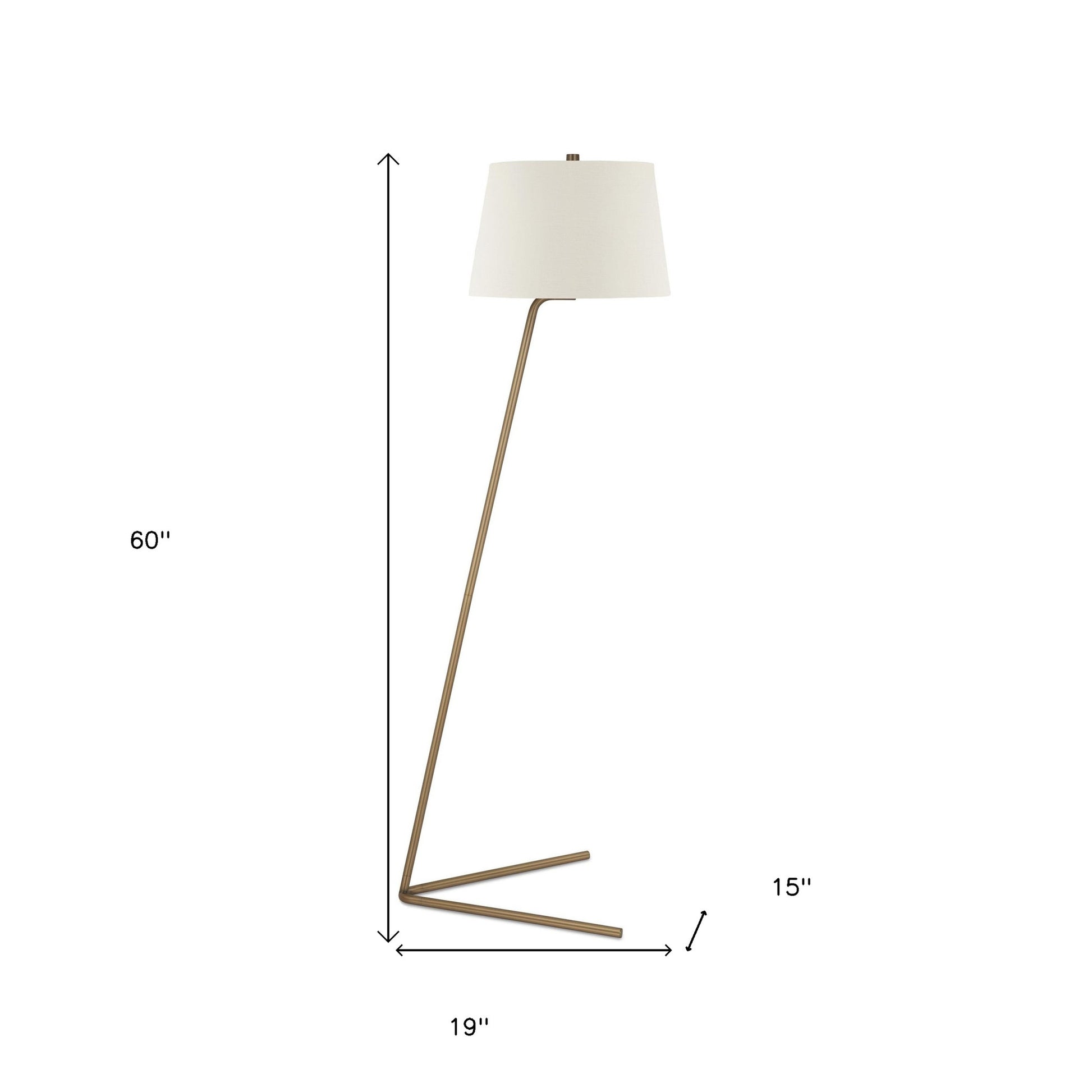 This 60" brass novelty floor lamp with white frosted glass drum shade is the perfect combination of design and function mixed with basic good looks. The lamp is made of sturdy metal and features a brass color. The brass base coloring infuses a warm and rich tone to your space. The coloration of the brass lamp base creates a fashionable marriage with the the white fabric drum shaped shade. Designed to be unique and visually pleasing while giving great light, this novelty lamp will bring some fun fashion and style to your space Use this lamp anywhere and elevate the look of the whole space. Bring some lite and good vibes into your space with this updated and stylishly designed lamp. 60" H x 19" W x 15" D