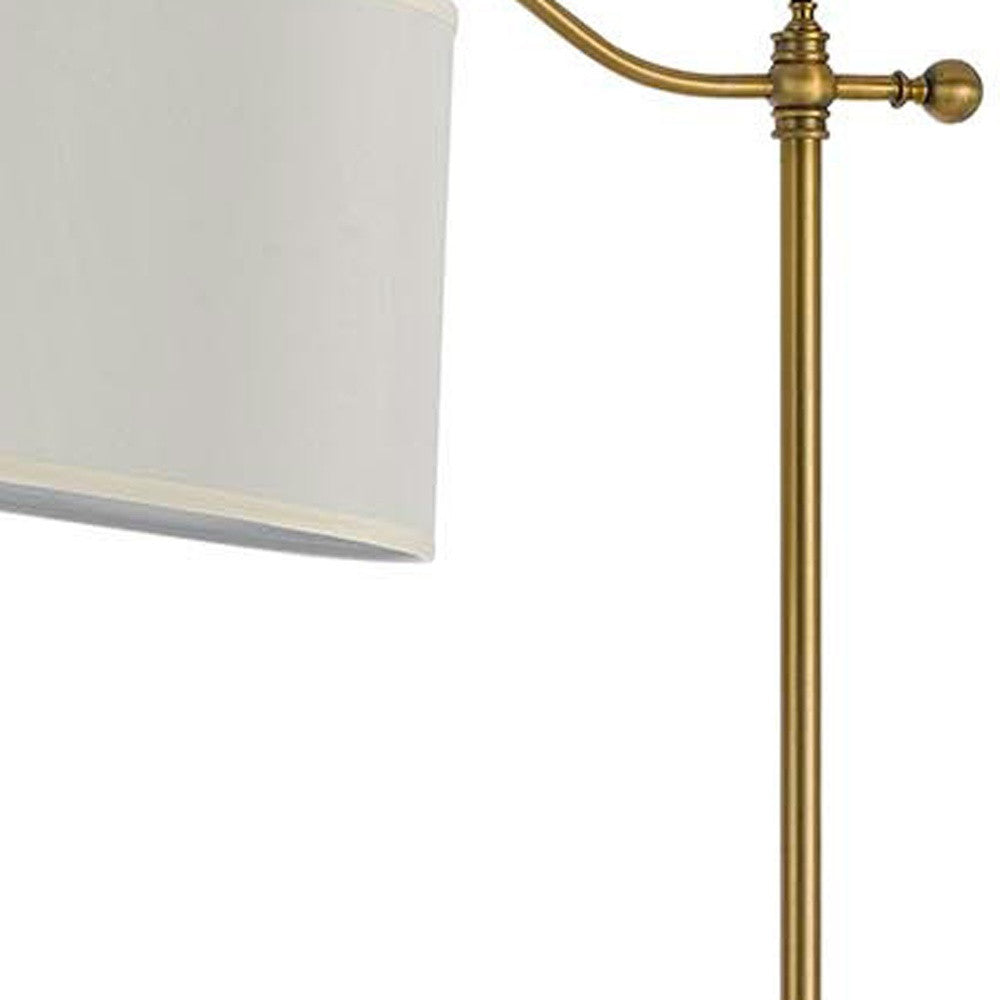 This 63" bronze adjustable traditional shaped floor lamp with white square shade is the perfect combination of design and function mixed with basic good looks. The base of this lamp is made of bronze metal. The bronze base coloring infuses a warm and rich tone to your space. The lamp light itself is covered by a fabric, square shaped shade, making this a classy piece that will complement most any interior. Classically styled, this traditional lamp features a straight pole that extends upwards from a single base. Use this lamp anywhere and elevate the look of the whole space. It is perfect for virtually any decor. 62.5" H x 28" W x 14" D