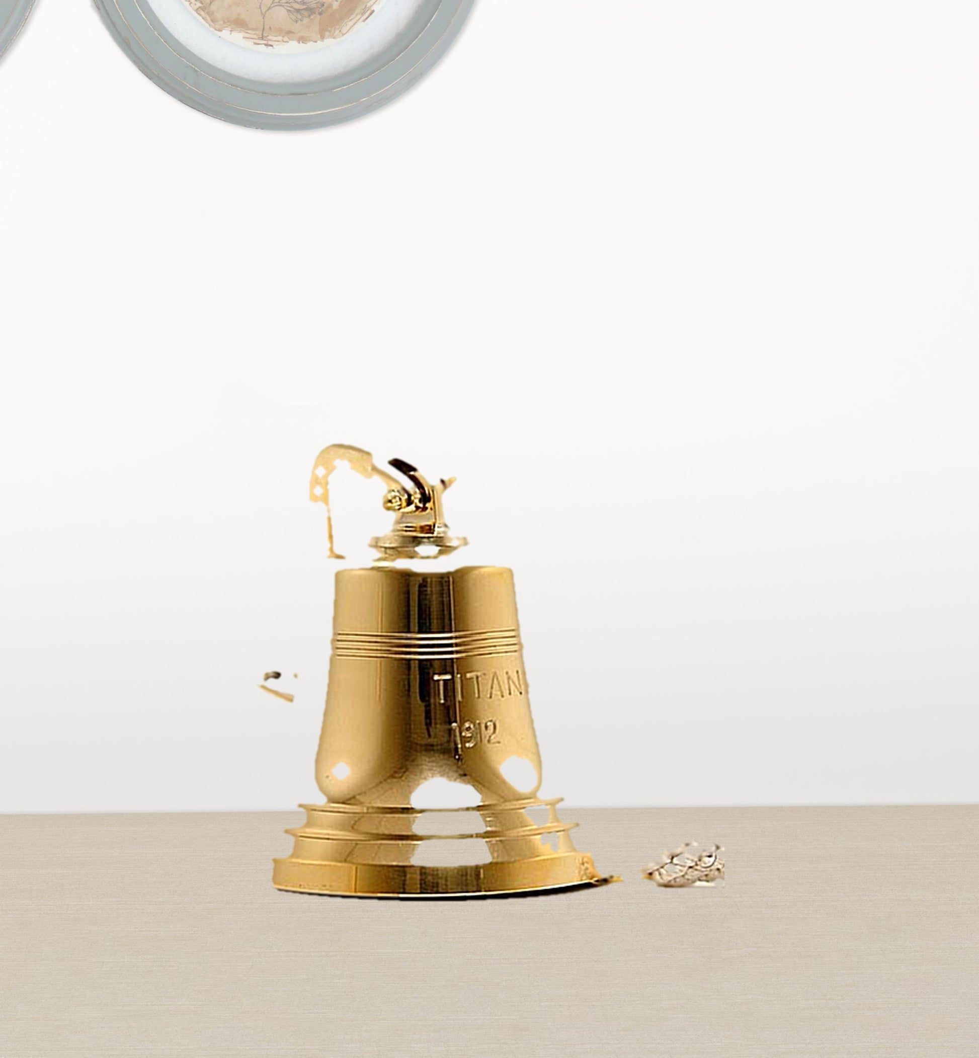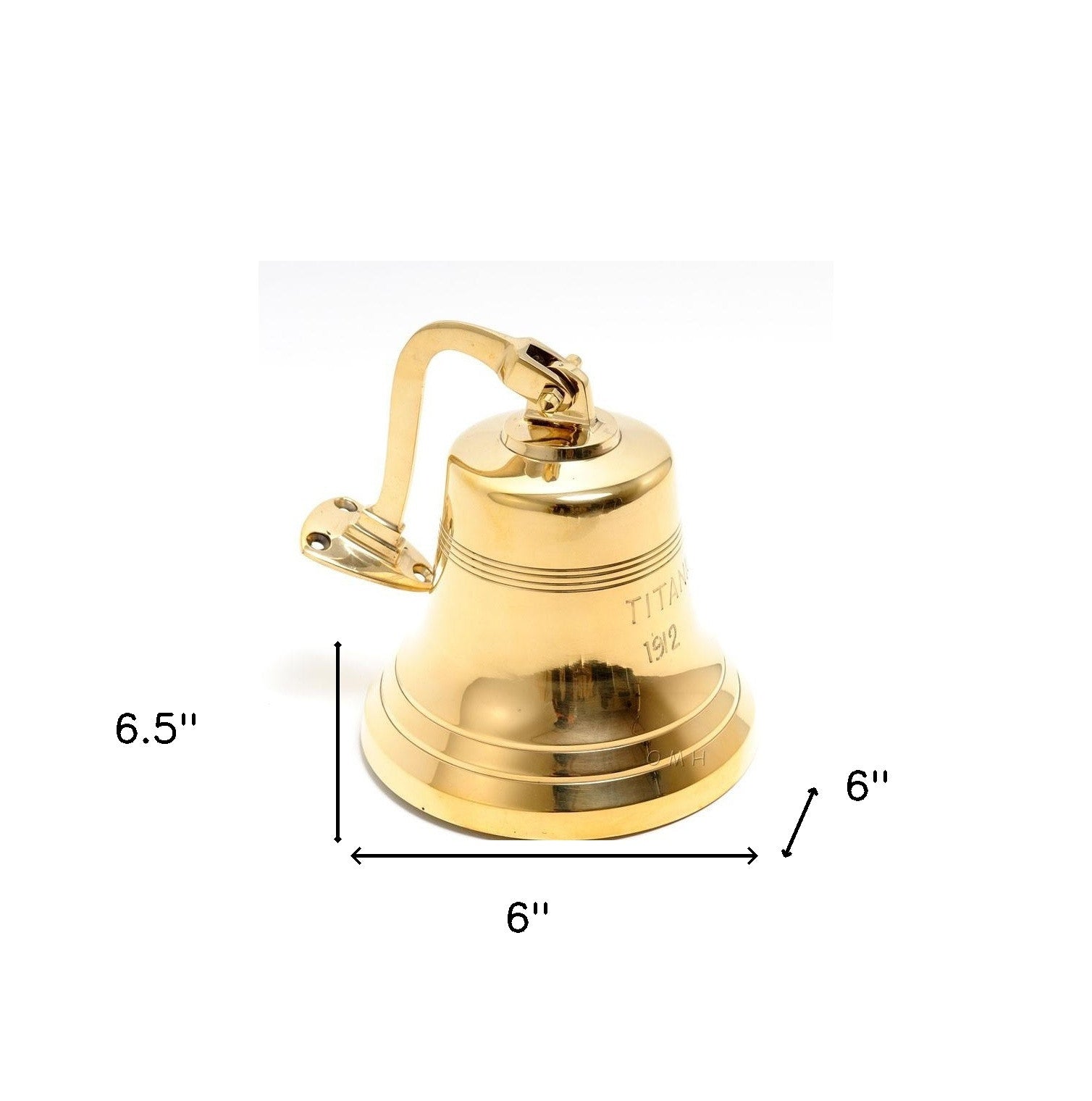 Retro and super cool, the 1912 RMS Titanic Ship Bell Sculpture 6" is a unique handmade replica of the bell that was used on Titanic to signal lunchtime. It comes in a gold color and a mounting bracket so it can be mounted in any home, cafe, or ship. Makes a great gift. 6.5" H x 6" W x 6" D