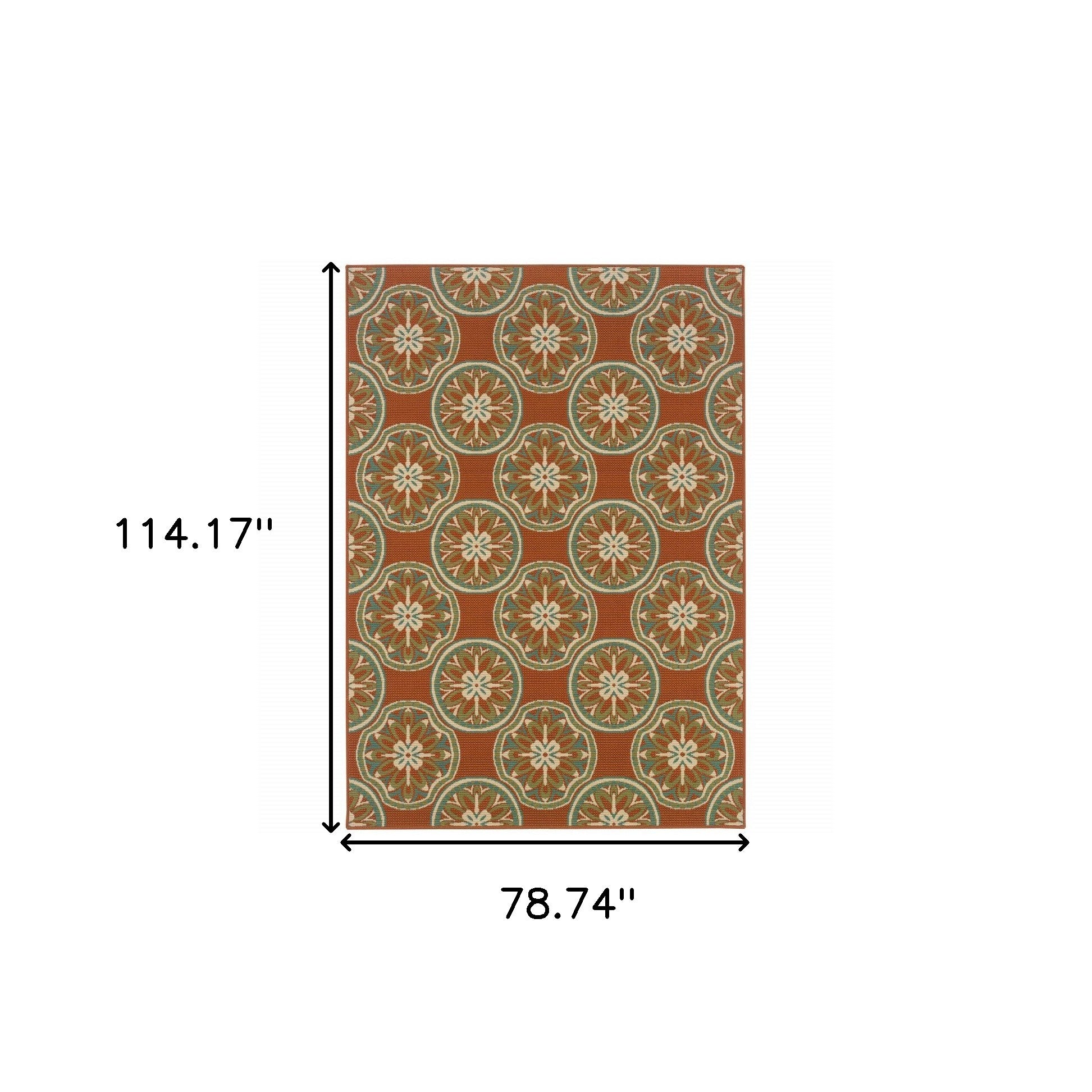7' x 10' Brown and Ivory Floral Stain Resistant Indoor Outdoor Area Rug