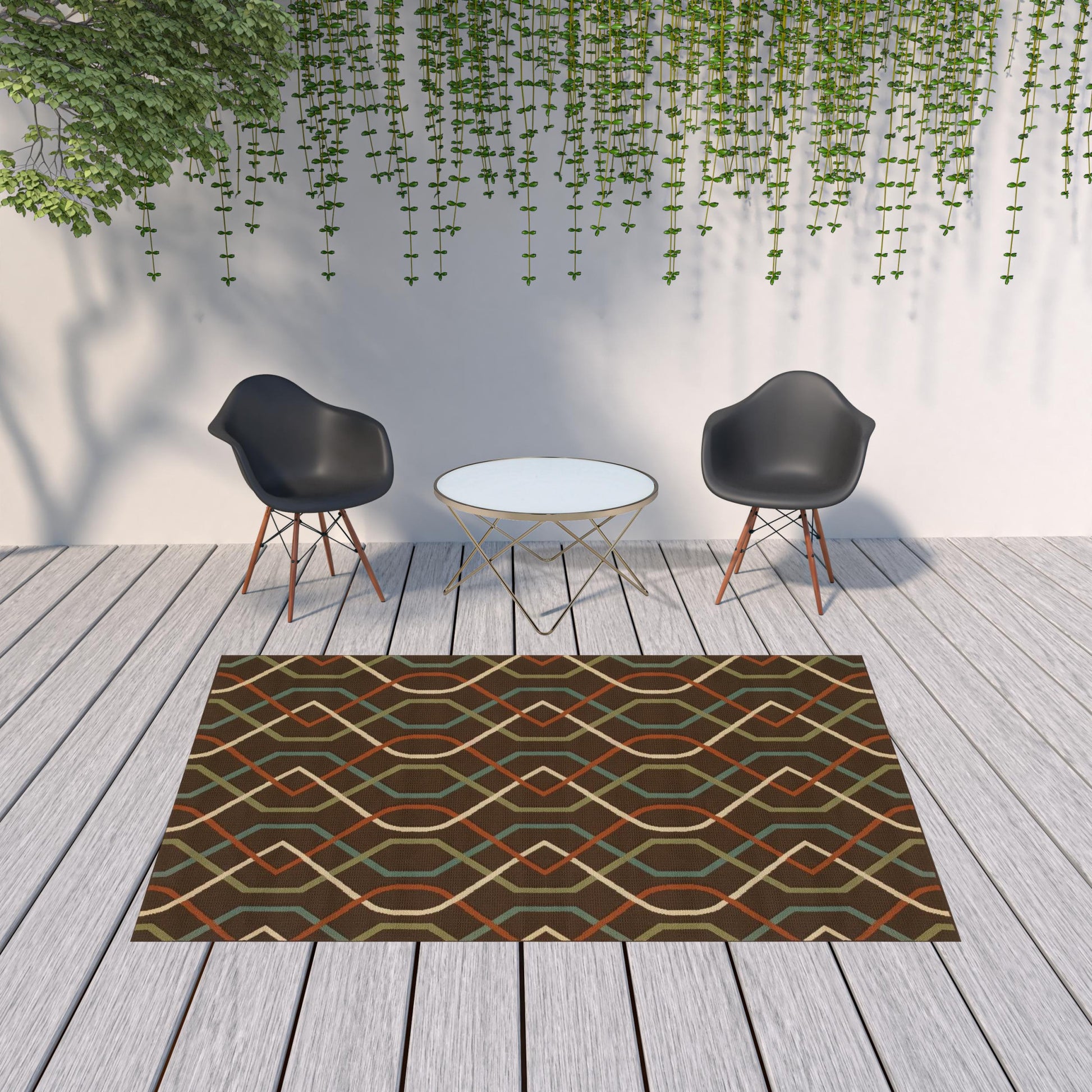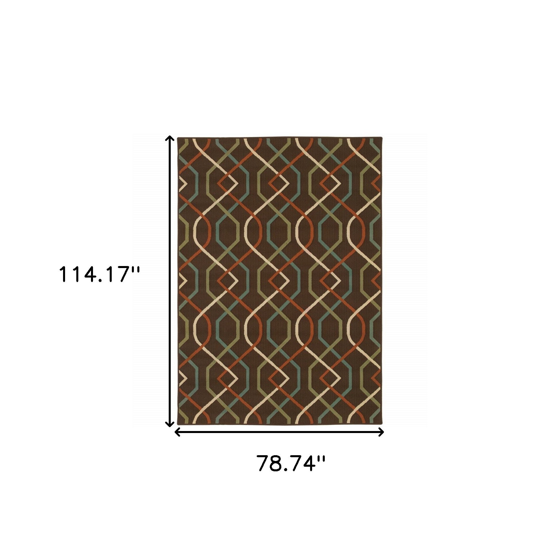 Set an inviting tone in your space with this 7-foot x 10-foot brown and ivory geometric stain resistant indoor outdoor area rug. This rectangle shaped rug features a geometric design in brown and ivory to give it visual interest. A classic shape marries with good looking design for your space Ideal for spaces with kids and pets, this rug is stain resistant to help repel stains and spilled liquids. Place this area rug against a hardwood or tile floor and it will enliven your living space with style and sophistication. 0.16-inch H x 78.74-inch W x 114.17-inch D