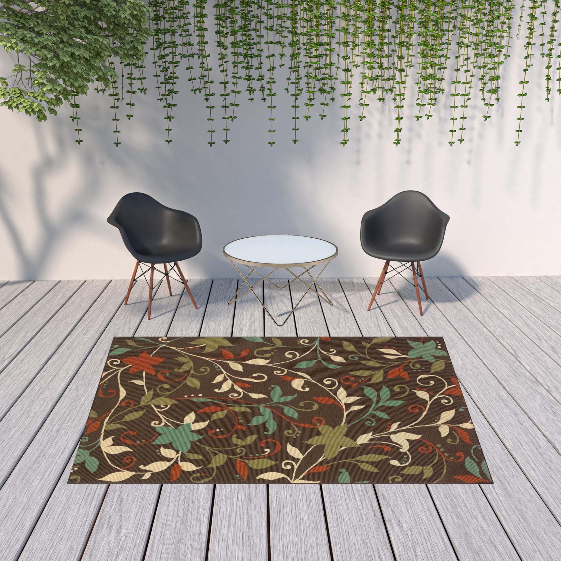 7' x 10' Brown Floral Stain Resistant Indoor Outdoor Area Rug