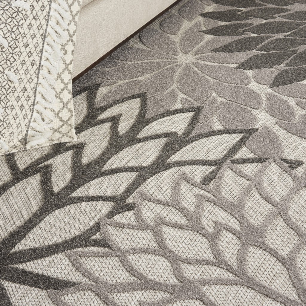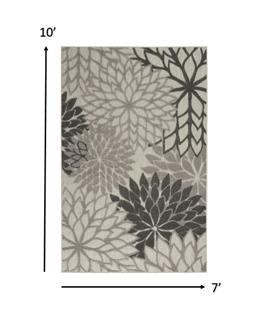 7' X 10' Gray Floral Indoor Outdoor Area Rug
