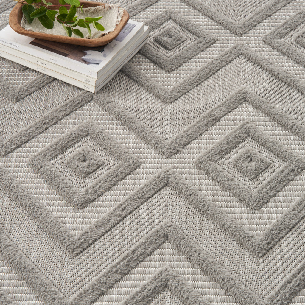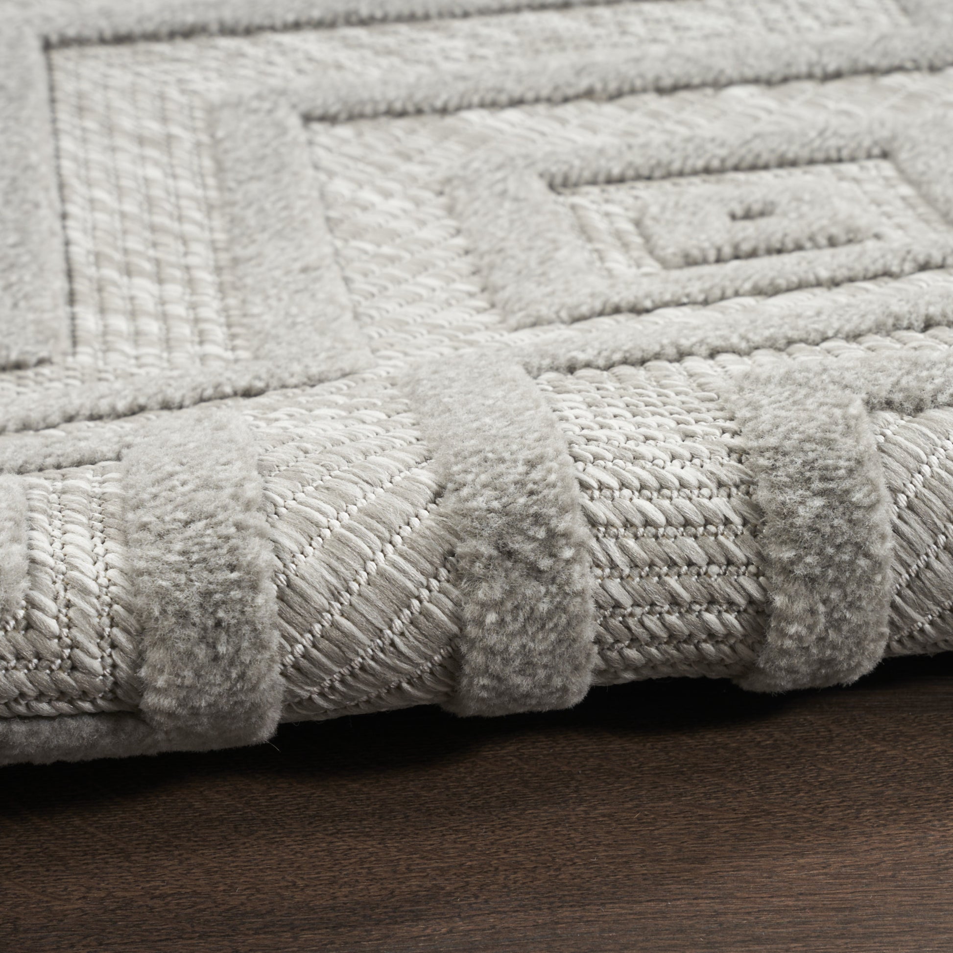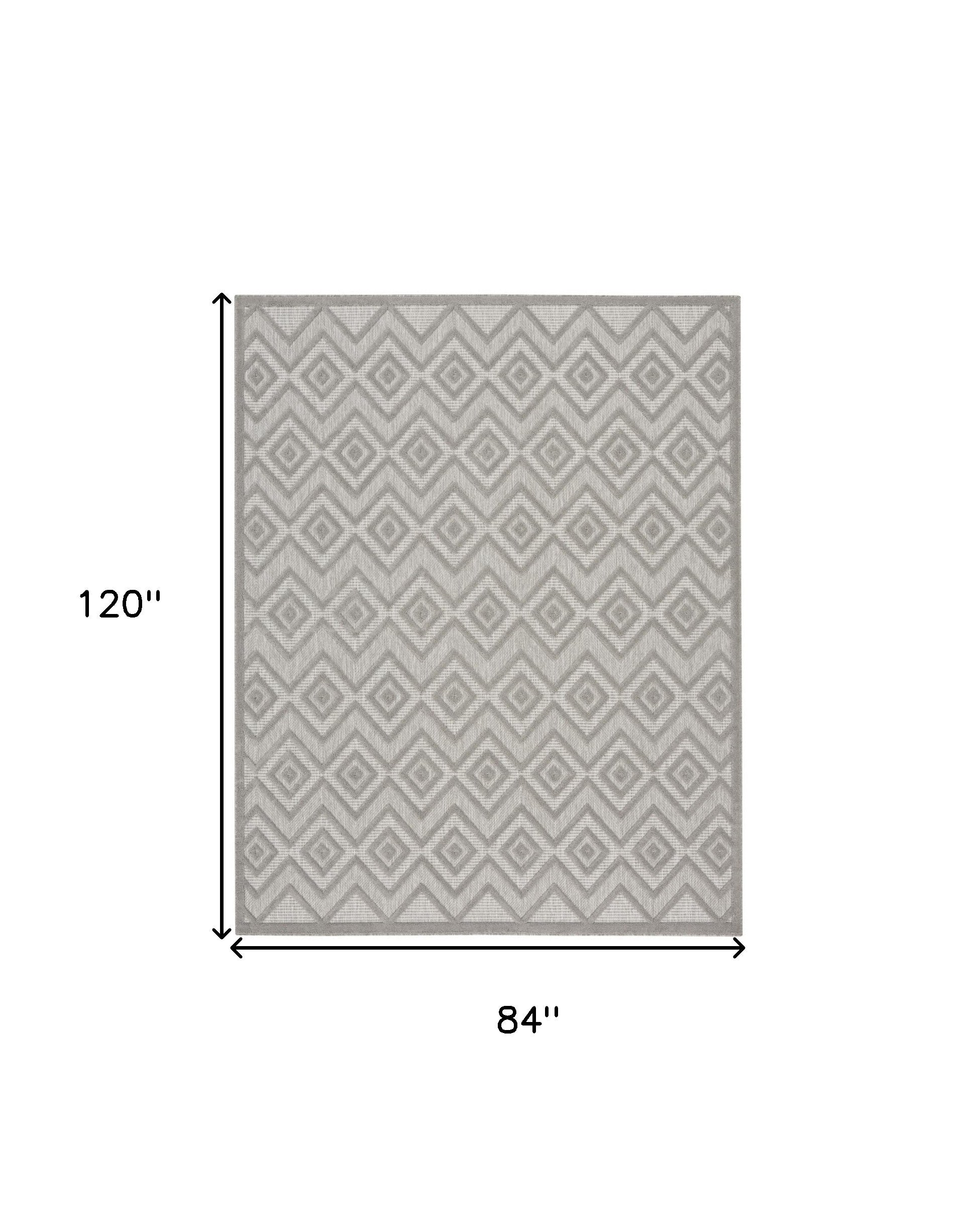 This 7' x 10' gray geometric flatweave area rug, is a great way to add warmth to a room. This rectangle shaped rug features a geometric design in gray to give it visual interest. A classic shape marries with good looking design for your space The coloring of this rug adds a delightfully neutral tone to your home and will easily match with most any decor. Made in Turkey, this rug offers high quality combined with good looking designer sensibilities. Place this area rug against a hardwood or tile floor and it will enliven your living space with style and sophistication. .30" H x 84.00" W x 120.00" D