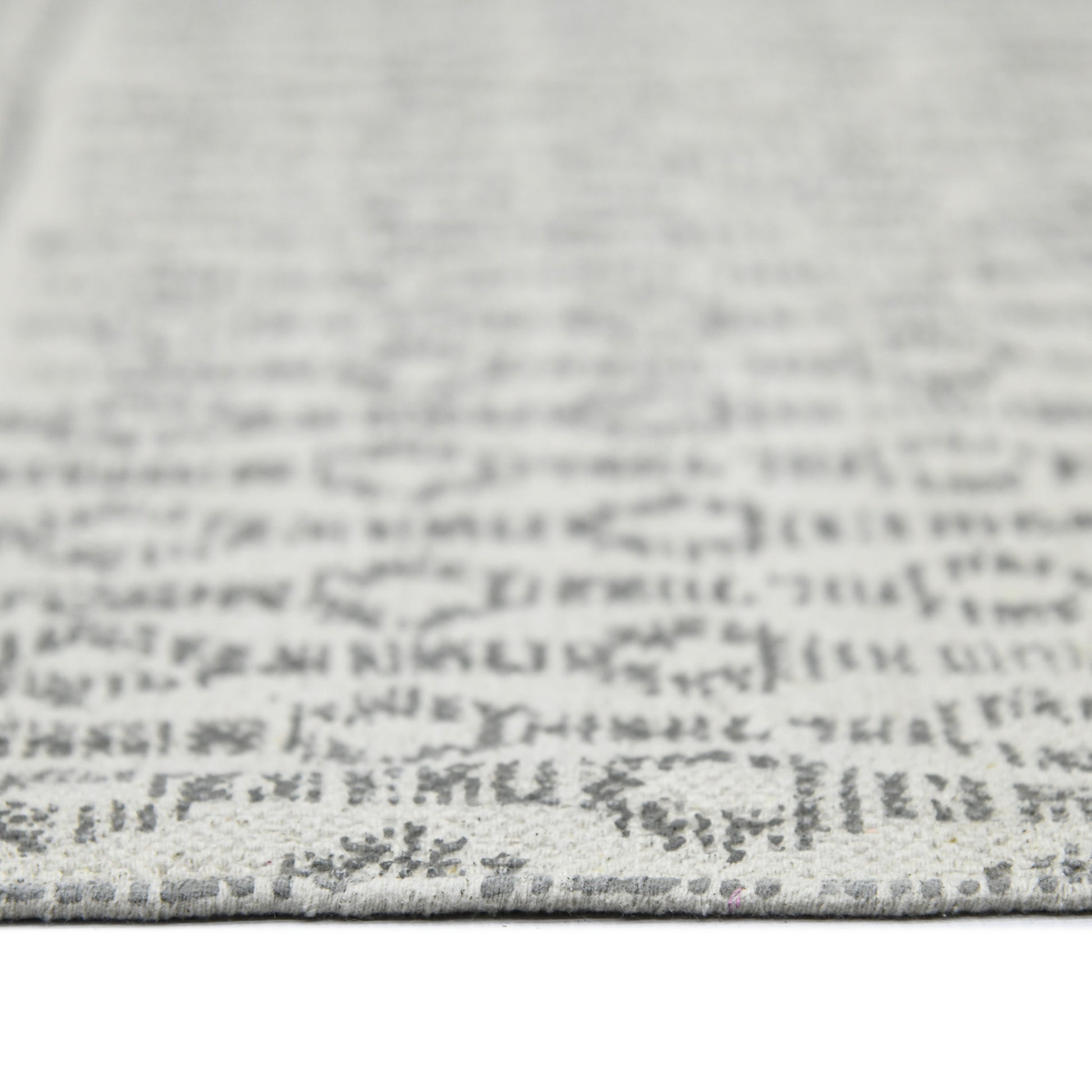 Add some artistry to your room with this 7 feet x 10 feet gray geometric flatweave handmade distressed area rug with fringe. This rectangle shaped rug features a geometric design in gray to give it visual interest. A classic shape marries with good looking design for your space The coloring of this rug adds a delightfully neutral tone to your home and will easily match with most any decor. Tassel ends bring a timeless and fashionable look to your interior. Area Rugs help to give warmth and sense of home to your space. 0.2 inches H x 90 inches W x 120 inches D