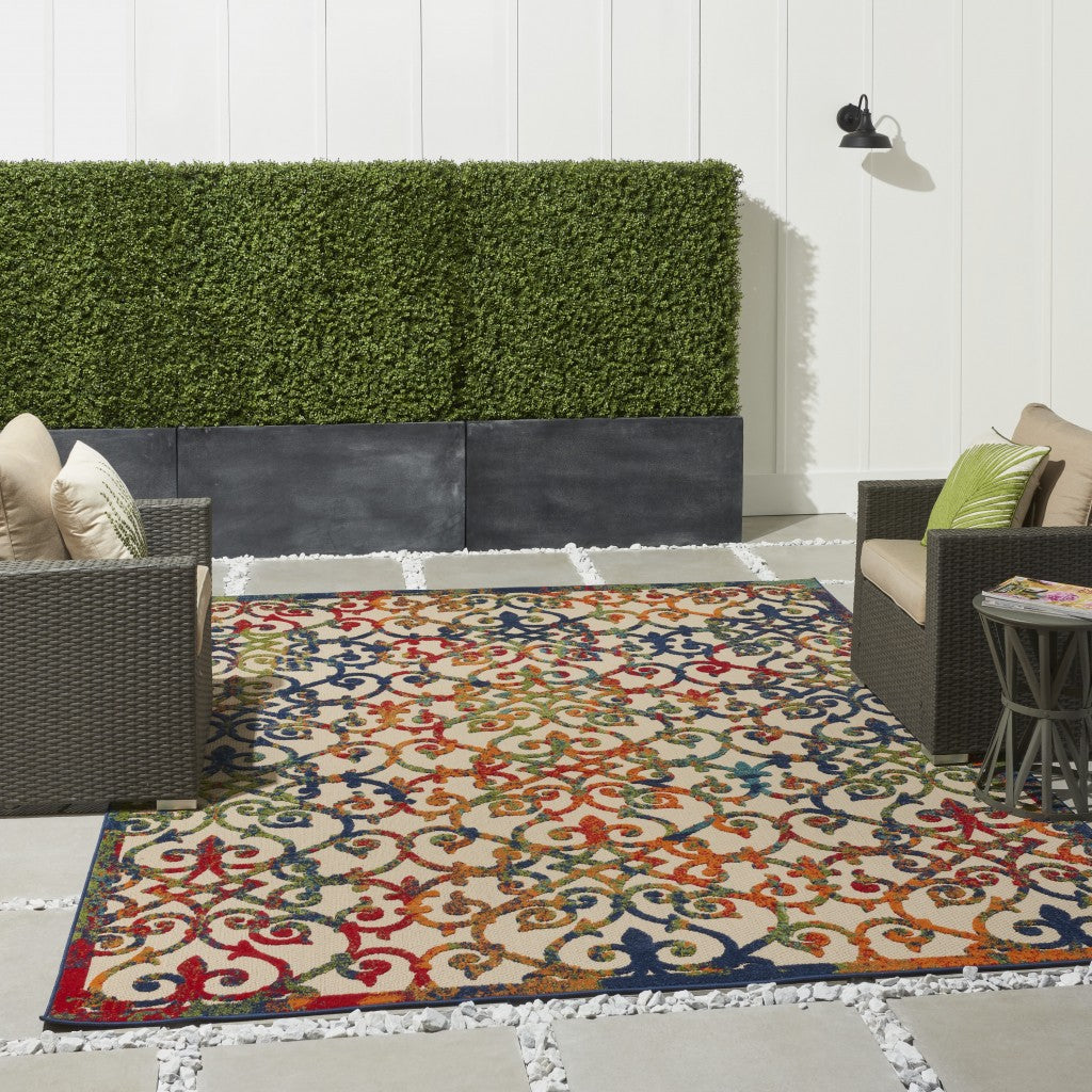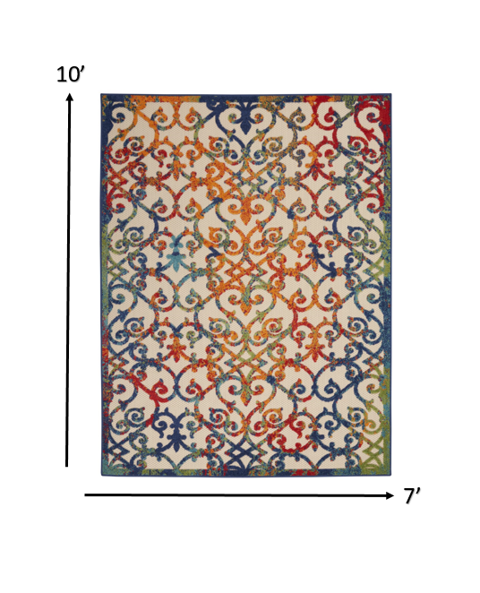 7' X 10' Ivory And Blue Floral Indoor Outdoor Area Rug
