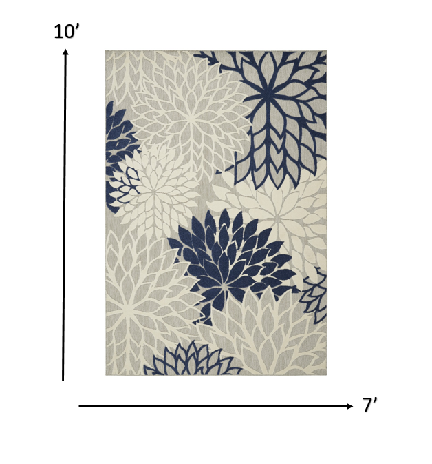 7' X 10' Ivory And Blue Floral Indoor Outdoor Area Rug
