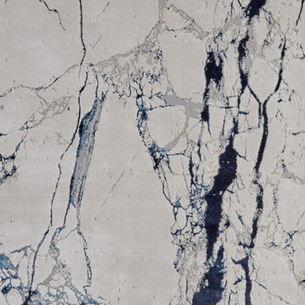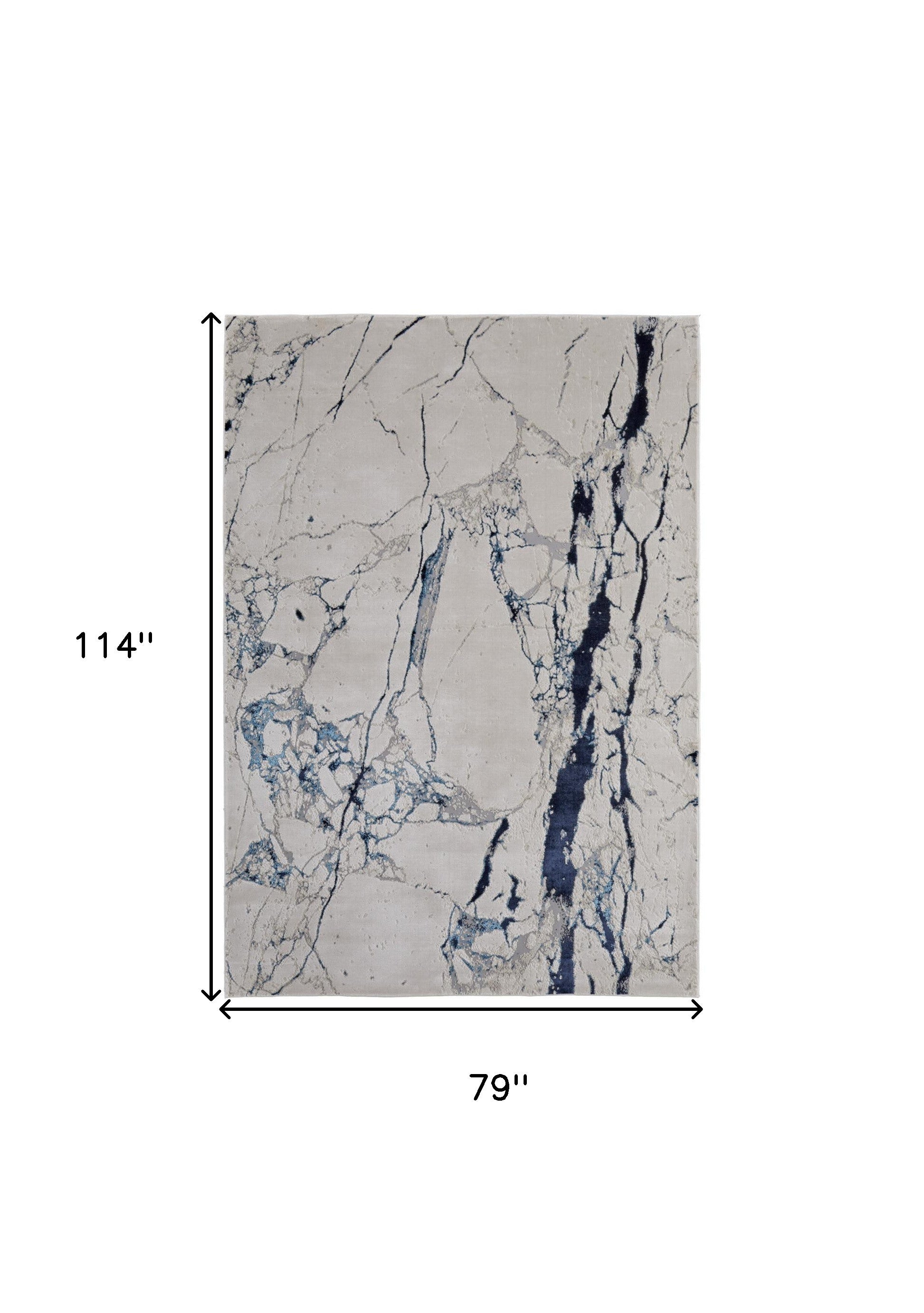 7' x 10' Ivory and Blue Marble Power Loom Distressed Area Rug