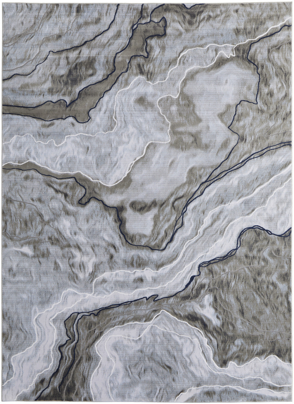 7' x 10' Ivory Blue and Gray Abstract Power Loom Area Rug