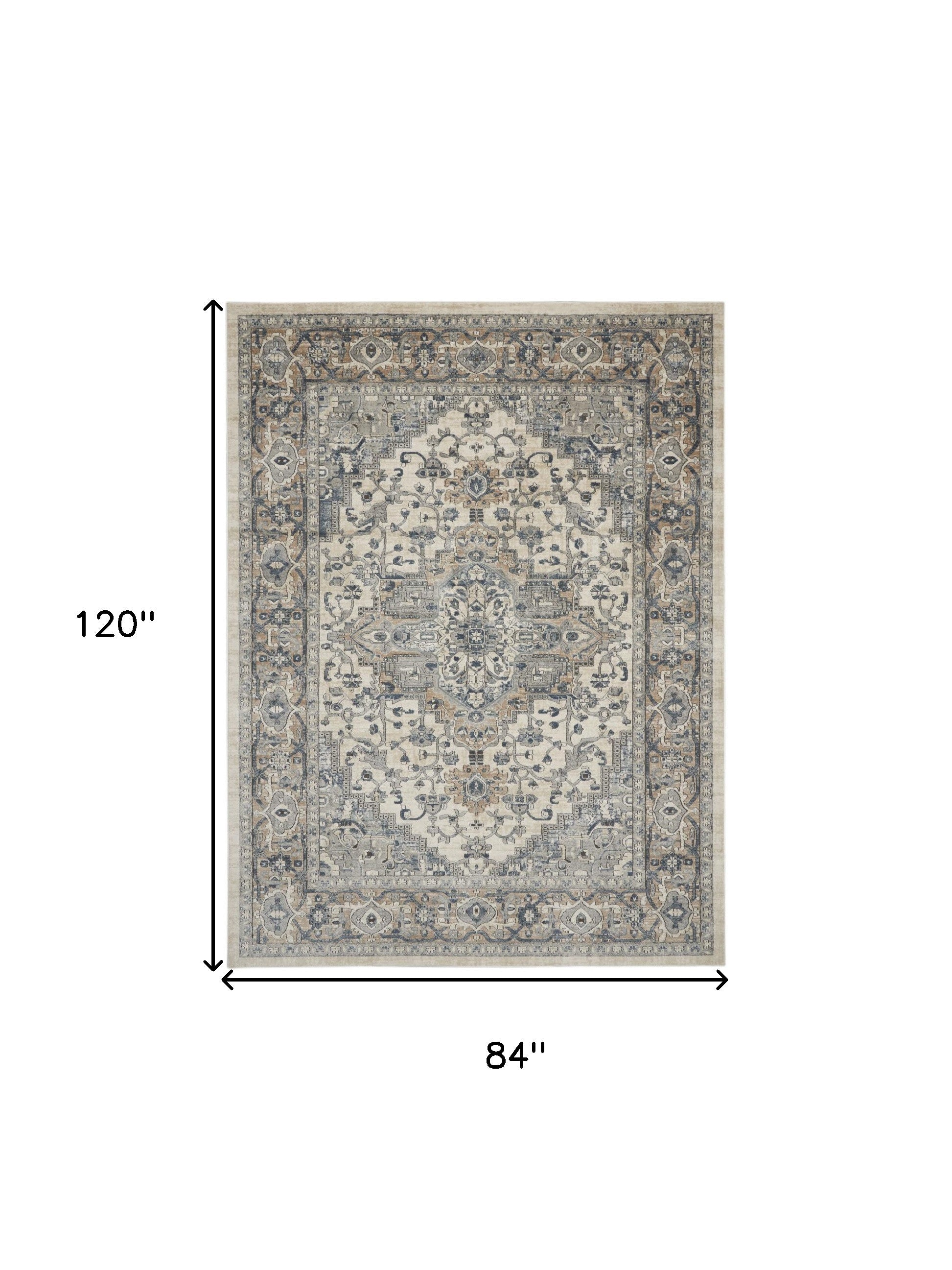 Add some artistry to your room with this 7' x 10' ivory floral power loom area rug. This rectangle shaped rug features a floral design in ivory to give it visual interest. A classic shape marries with good looking design for your space The coloring of this rug adds a delightfully neutral tone to your home and will easily match with most any decor. This superior Turkish rug represents the highest quality and is built to last. Place this area rug against a hardwood or tile floor and it will enliven your living space with style and sophistication. .32" H x 84.00" W x 120.00" D