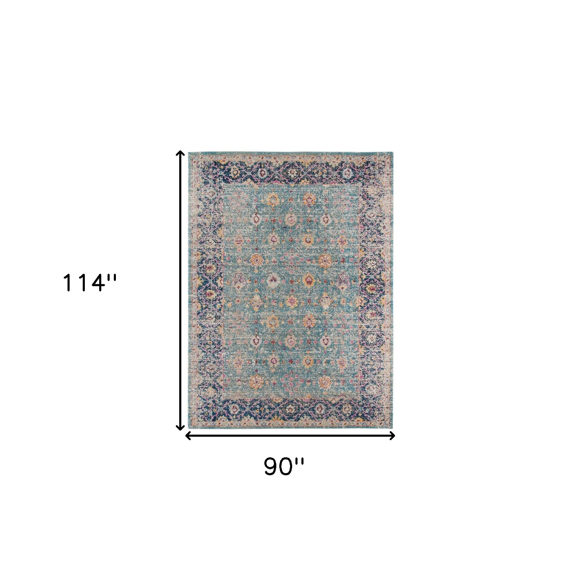 7' x 9' Blue and Orange Floral Power Loom Distressed Area Rug