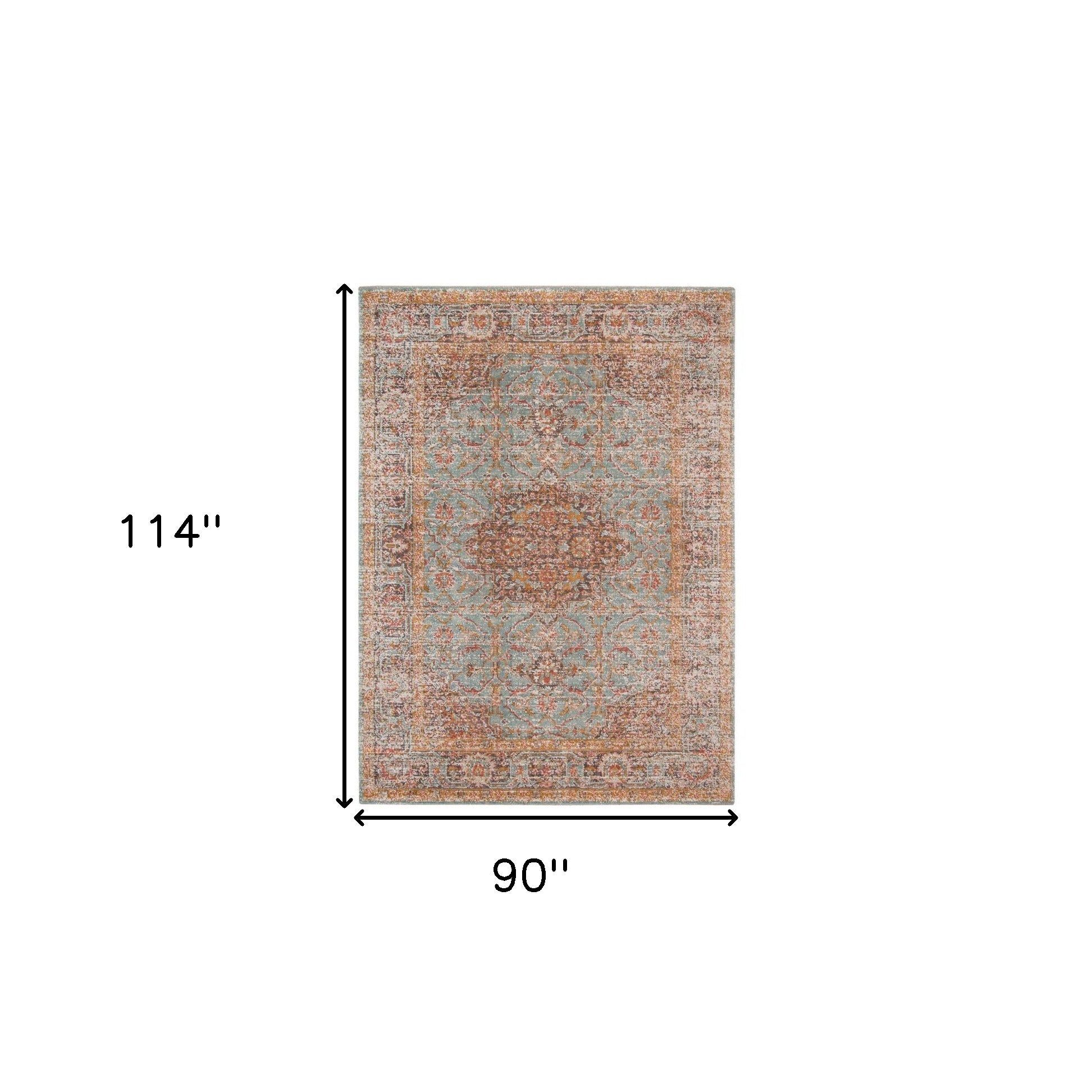 7' x 9' Sea Green Medallion Power Loom Area Rug With Fringe