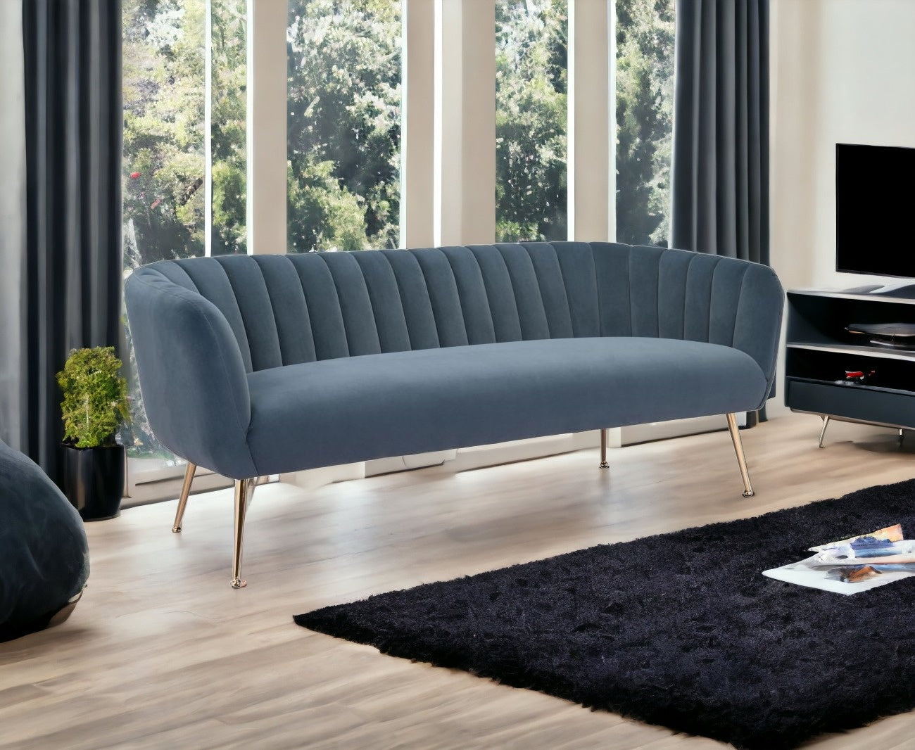 Add an air of fashion to your space with this fabulous 70-inch gray and gold velvet sofa. This solid color standard is made from sturdy and resilient velvet that has a warm and rich look and is a super soft and comfortable to the touch. Solid colors give you lots of decorative options and are easy to work into your decor scheme. Fixed arms offer a comfy place to rest. Gold metal legs effortlessly elevate the room and add a touch of contemporary design. Built to last, this sofa will be a great centerpiece for your room. 26.8-inch H x 70.1-inch W x 29.1-inch D