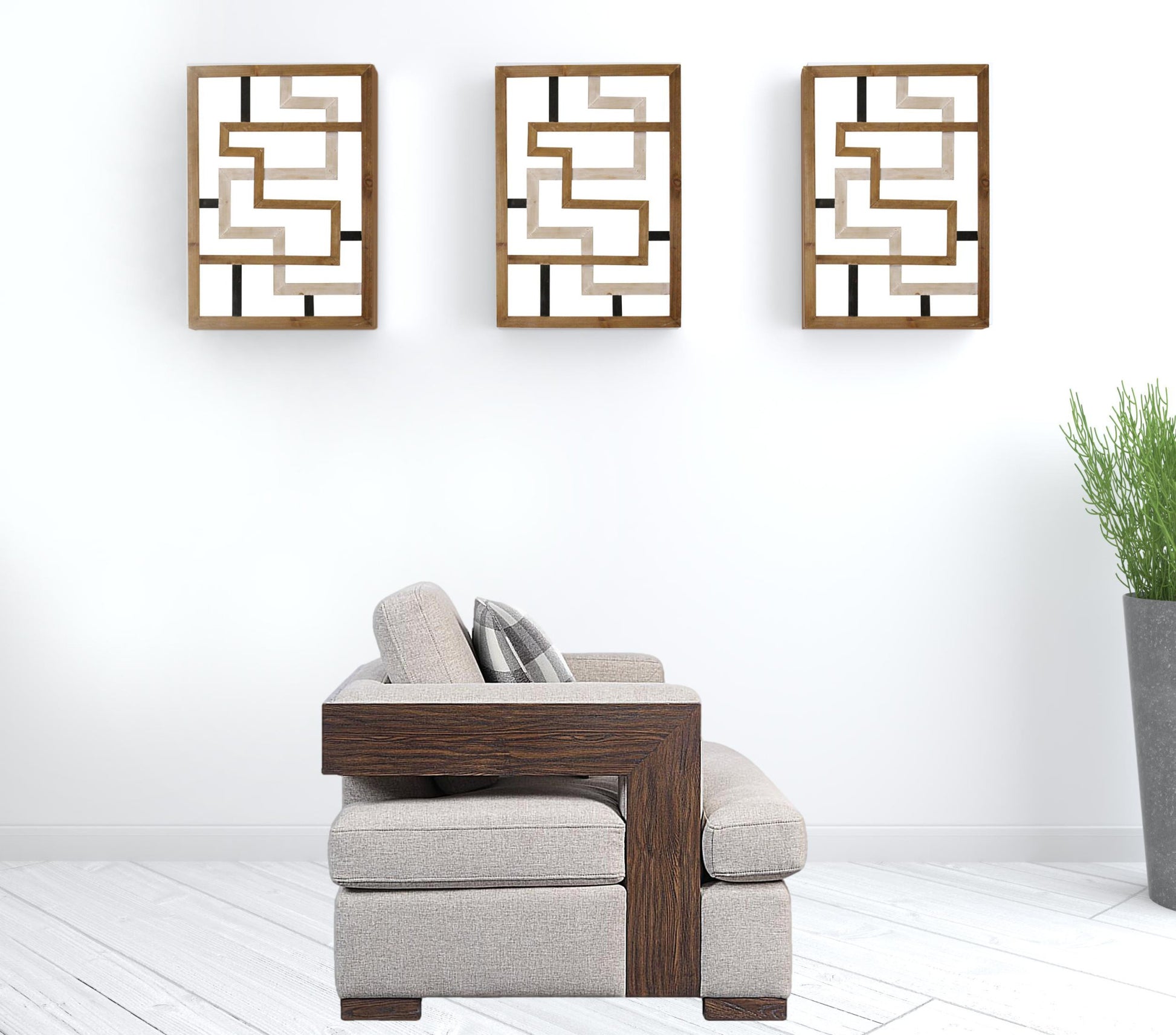 72" Beige 100% Linen And Walnut Love Seat with Pillows