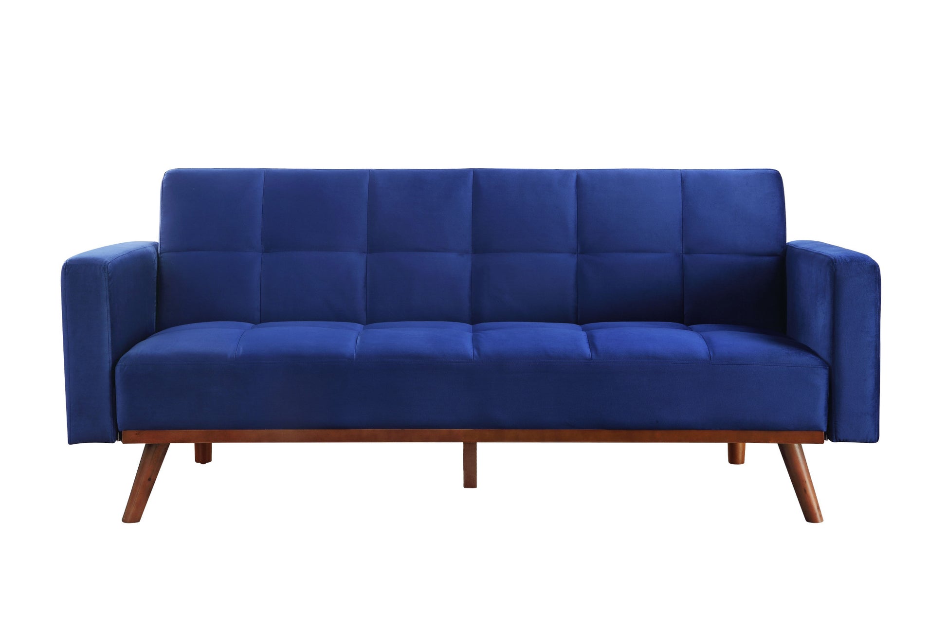 Transform your home's interior with this luxurious 76" blue velvet and natural sleeper sofa. This solid color standard is made from sturdy and resilient velvet that has a warm and rich look and is a super soft and comfortable to the touch. Solid colors give you lots of decorative options and are easy to work into your decor scheme. Square arms offer a comfy place to rest. Designed with an updated and refreshing style, this sofa is armless to create that unique contemporary or modern aesthetic. Built to last, this sofa will be a great centerpiece for your room. 33" H x 76" W x 35" D