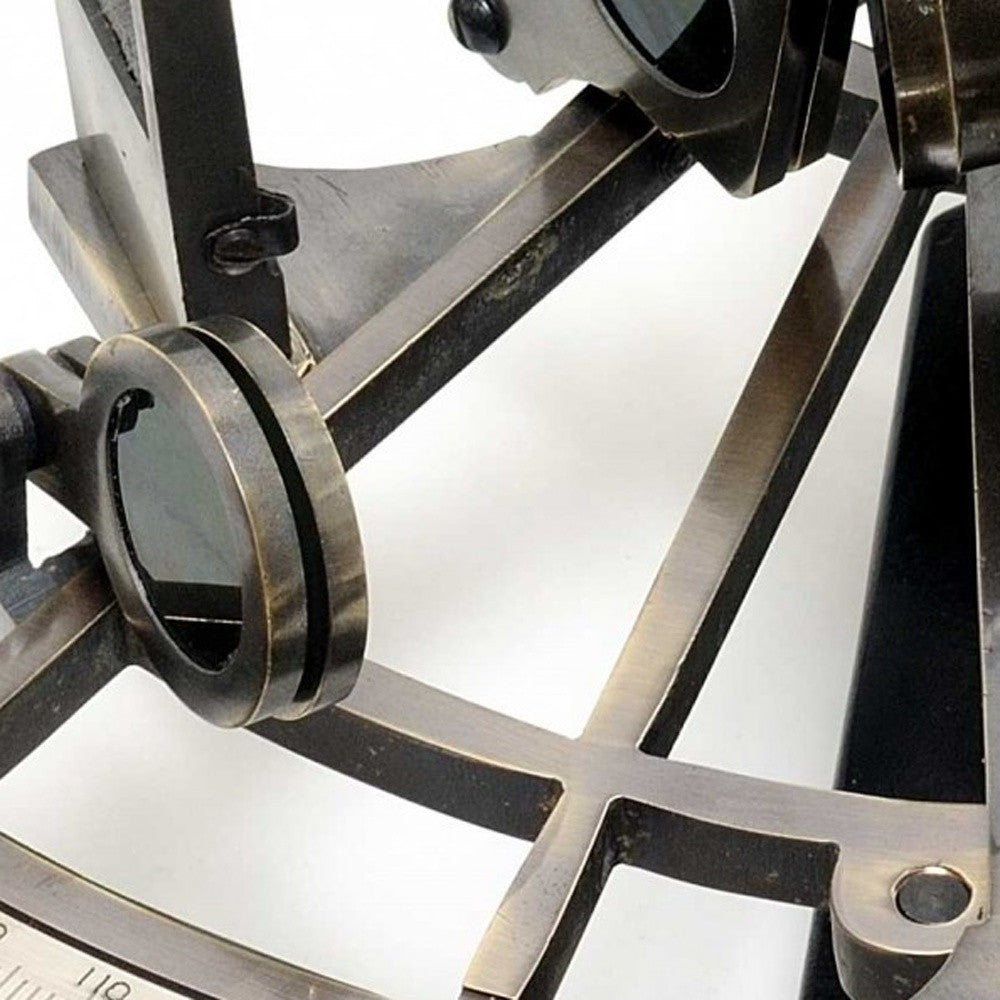 This is a fully functional nautical sextant. It is made of high quality brass. Each component is crafted with the finest craftsmanship. Available in antique brass finish and it comes in a beautiful rosewood gift box. This sextant is a great addition to any nautical collection. The item dimensions are: L: 8 inches, W: 8.5 inches, H: 4.5 inches.