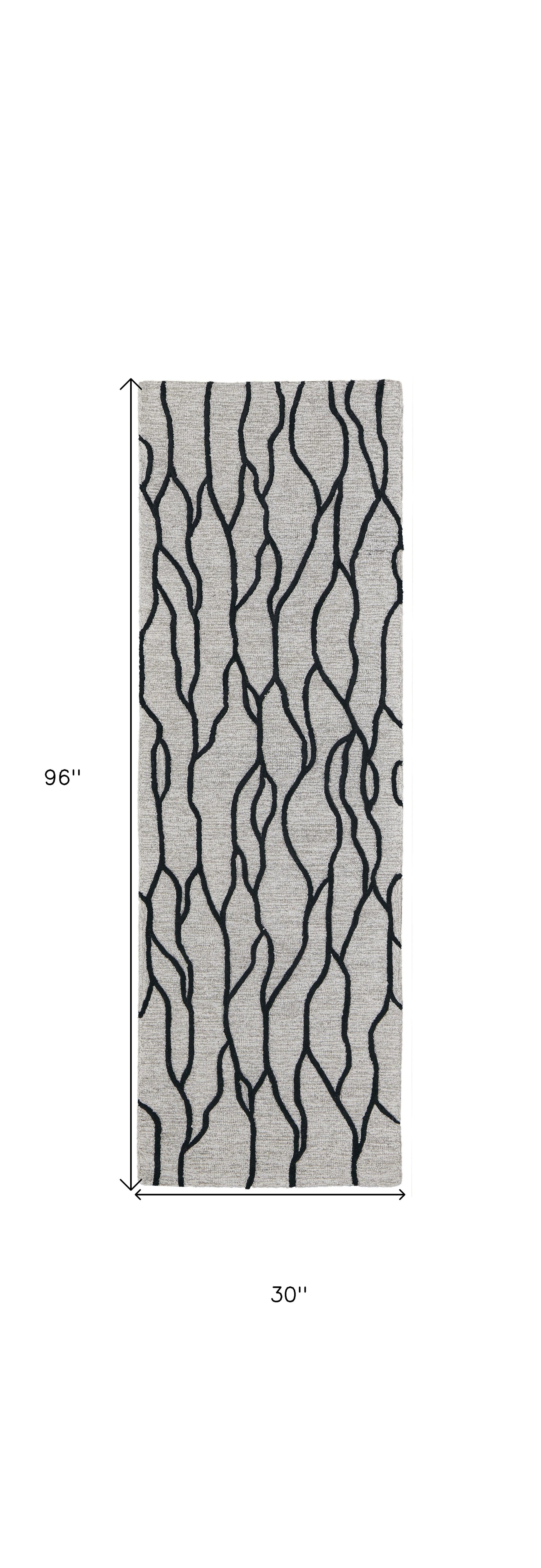 8' Black and Taupe Abstract Hand Tufted Runner Rug