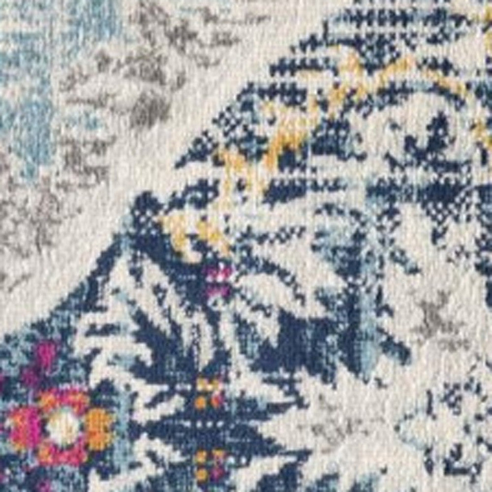Add great coloration and comfortable texture to your space with this 8' blue and beige round oriental washable non skid area rug. This geometric round shaped rug features a oriental pattern in blue and beige that combines a good looking print with a unique and updated shape. The mix of shape, color, and design gives this rug refreshing visual interest. Made in Turkey, this rug offers high quality combined with good looking designer sensibilities. Area Rugs help to give warmth and sense of home to your space. 0.4" H x 89" W x 89" D