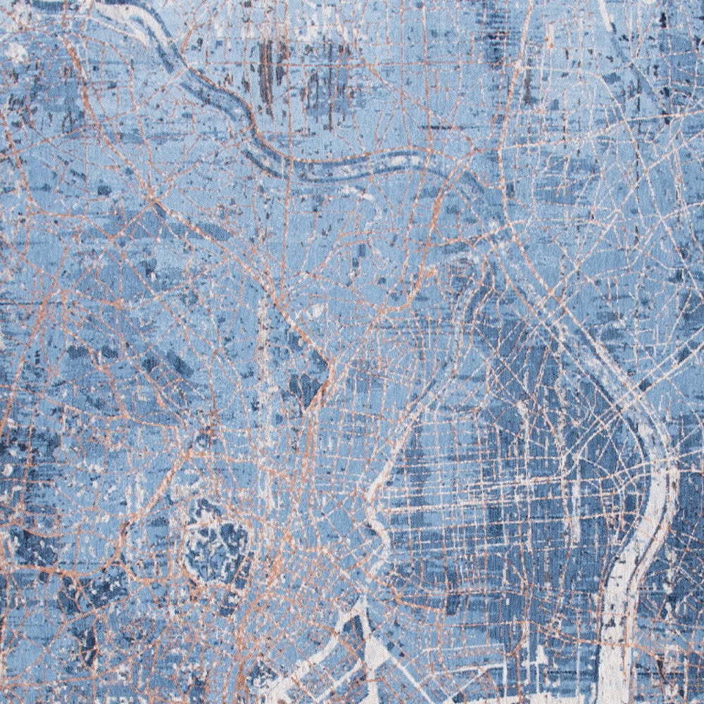 8' Blue and Black Round Abstract Non Skid Area Rug