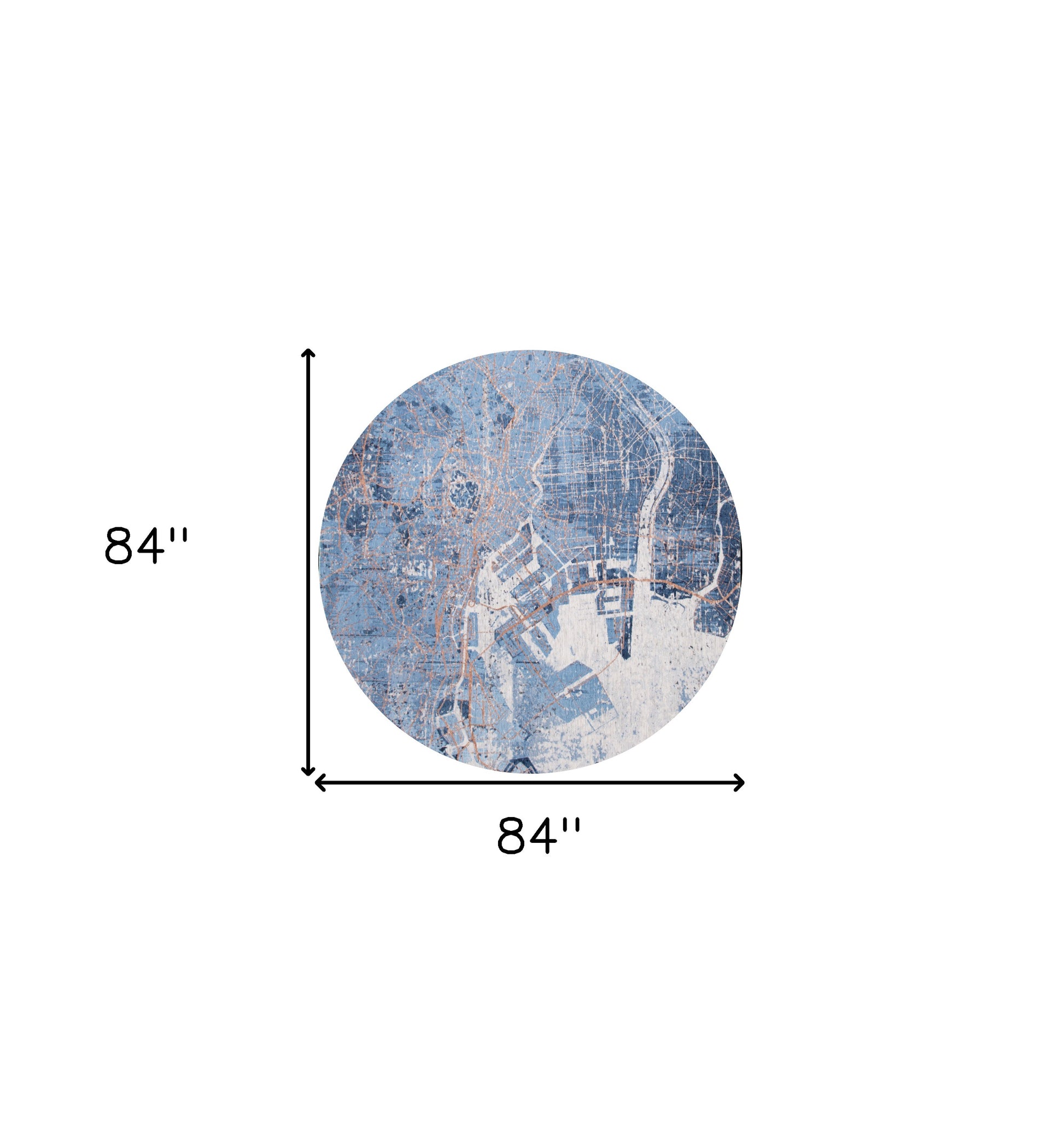 Add great coloration and comfortable texture to your space with this 8-foot blue and black round abstract non skid area rug. This geometric round shaped rug features a abstract pattern in blue and black that combines a good looking print with a unique and updated shape. The mix of shape, color, and design gives this rug refreshing visual interest. Area rugs help to give warmth and sense of home to your space. 84-inch H x 84-inch W x 0.12-inch D