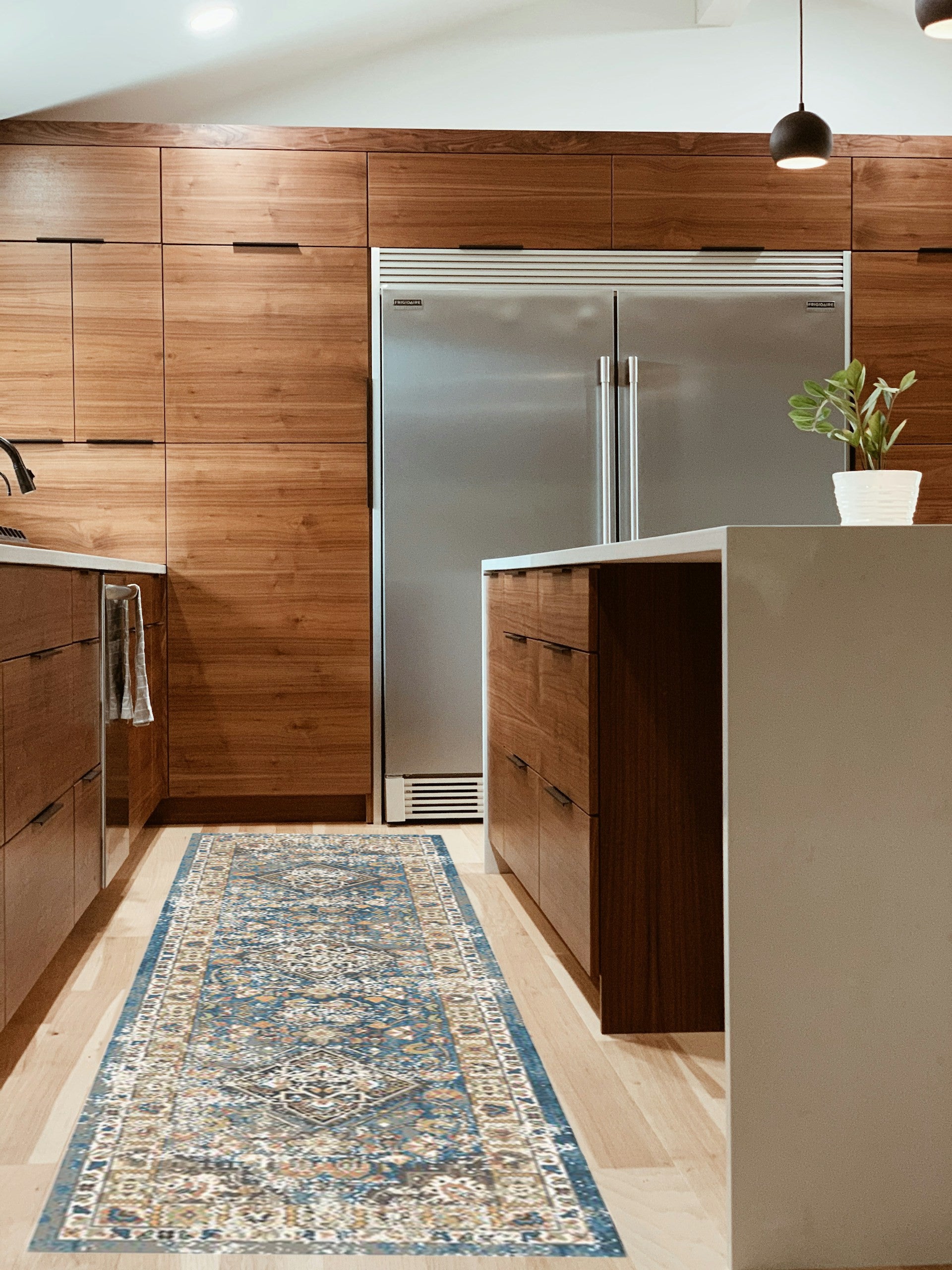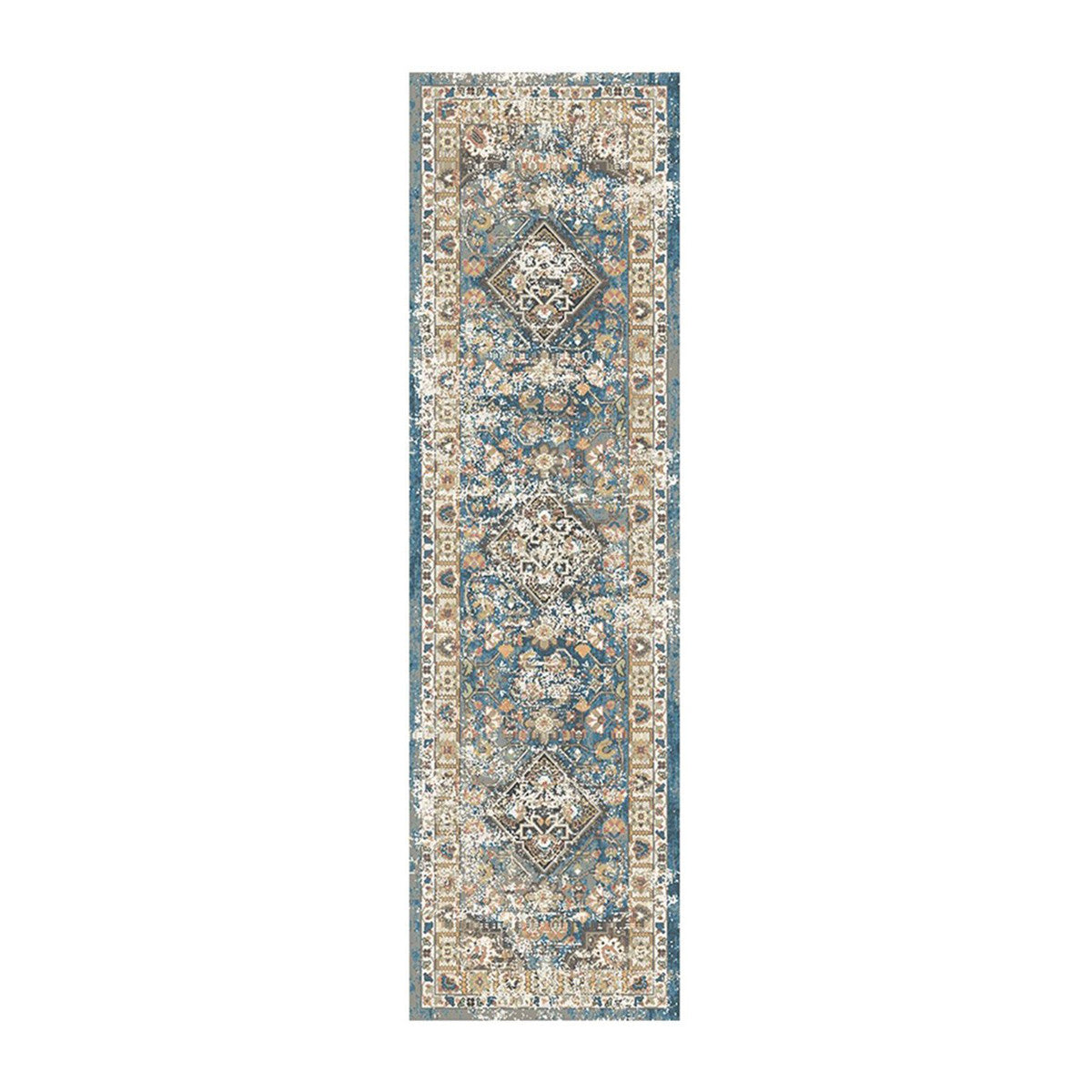 Add great coloration and comfortable texture to your space with this 8-foot blue and brown oriental distressed runner rug with fringe. This runner shaped rug features a oriental design in blue and brown to give it visual interest. A classic shape marries with good looking design for your space ideal for spaces with kids and pets, this rug is stain resistant to help repel stains and spilled liquids. Tassel ends bring a timeless and fashionable look to your interior. Area rugs help to give warmth and sense of home to your space. 25-inch H x 89-inch W x 0.39-inch D