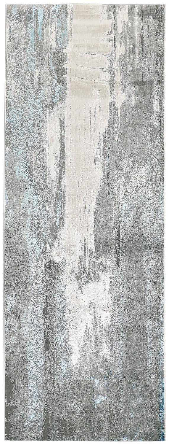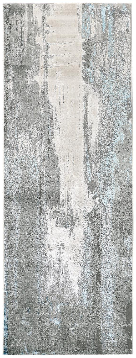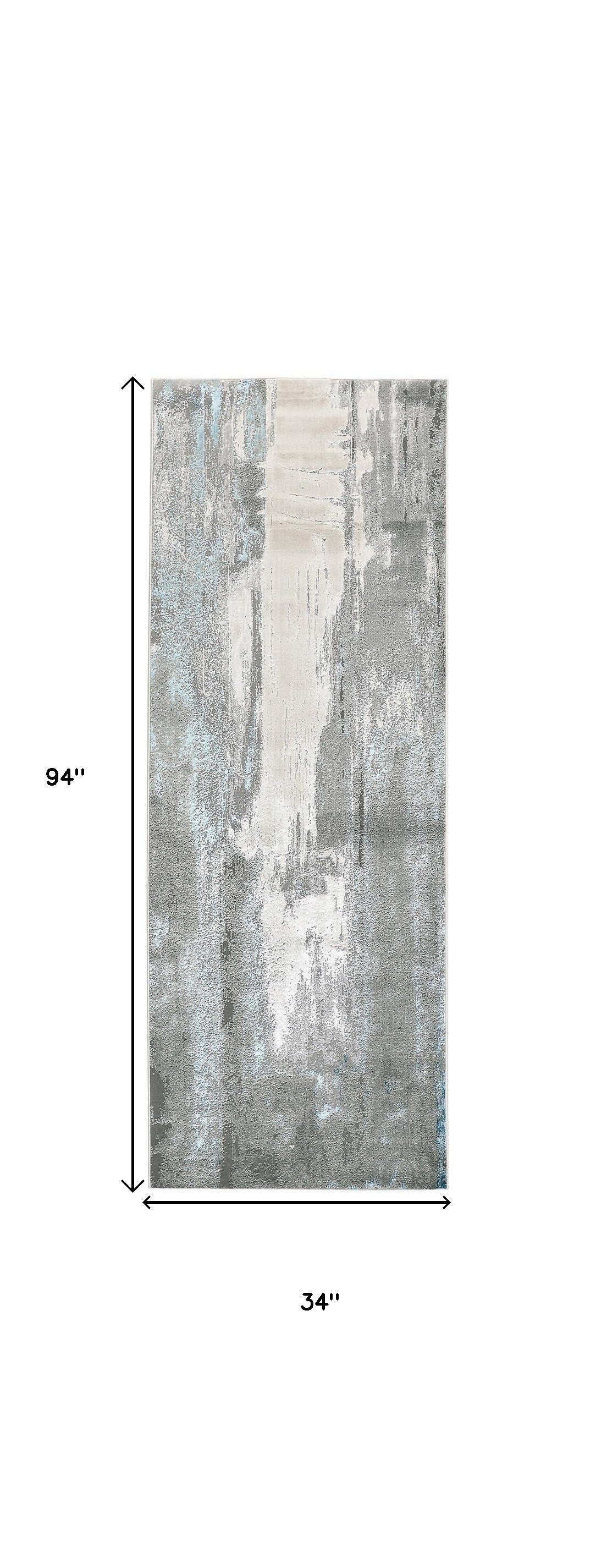 8' Blue and Gray Abstract Power Loom Runner Rug