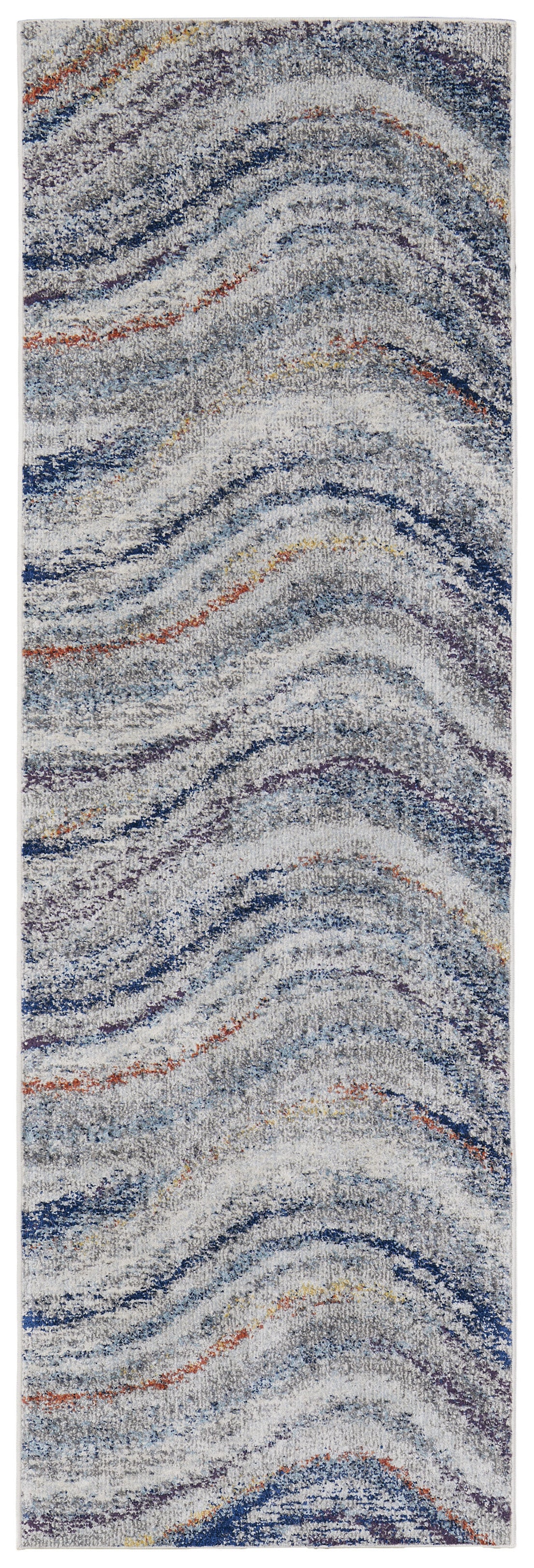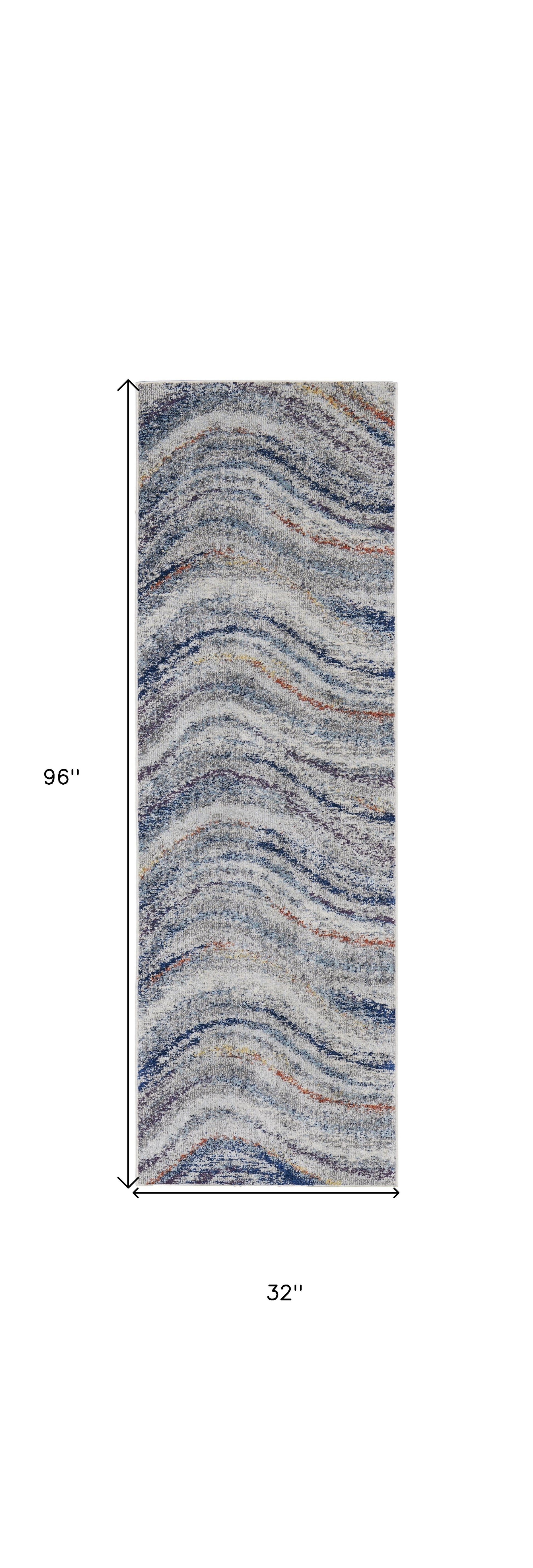 8' Blue and Gray Abstract Power Loom Runner Rug
