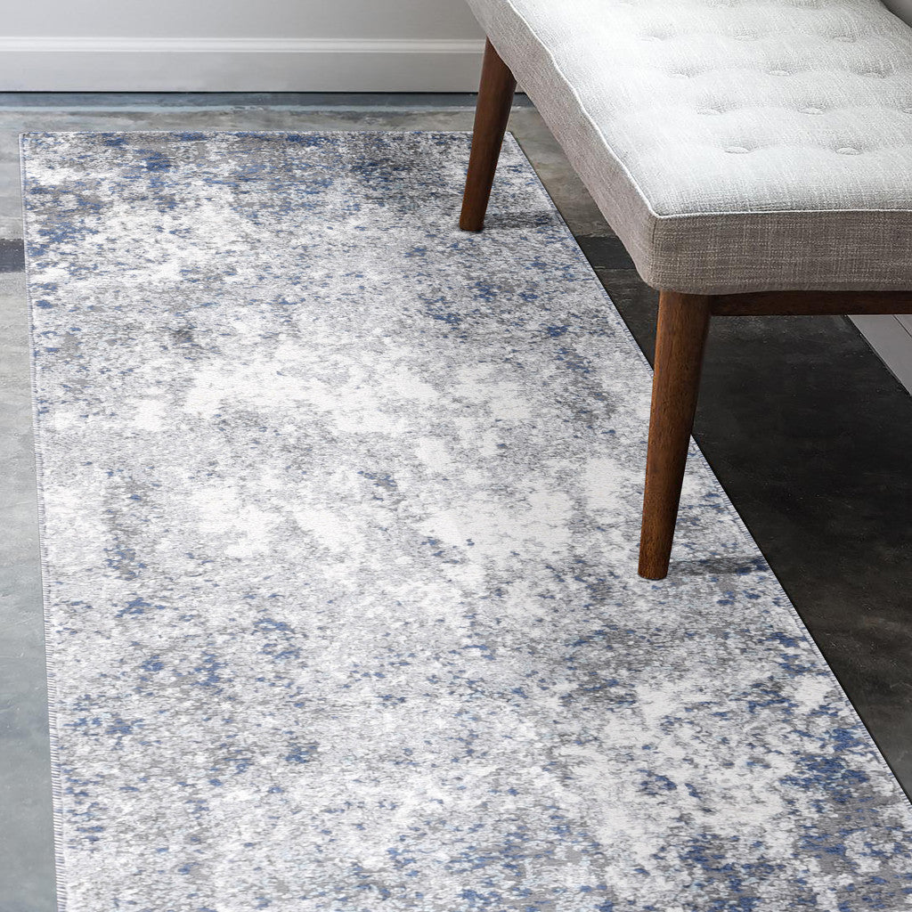 Add some artistry to your room with this 8-foot blue and gray abstract power loom runner rug. This runner shaped rug features a abstract design in blue and gray to give it visual interest. A classic shape marries with good looking design for your space place this area rug against a hardwood or tile floor and it will enliven your living space with style and sophistication. 30-inch H x 96-inch W x 0.4-inch D
