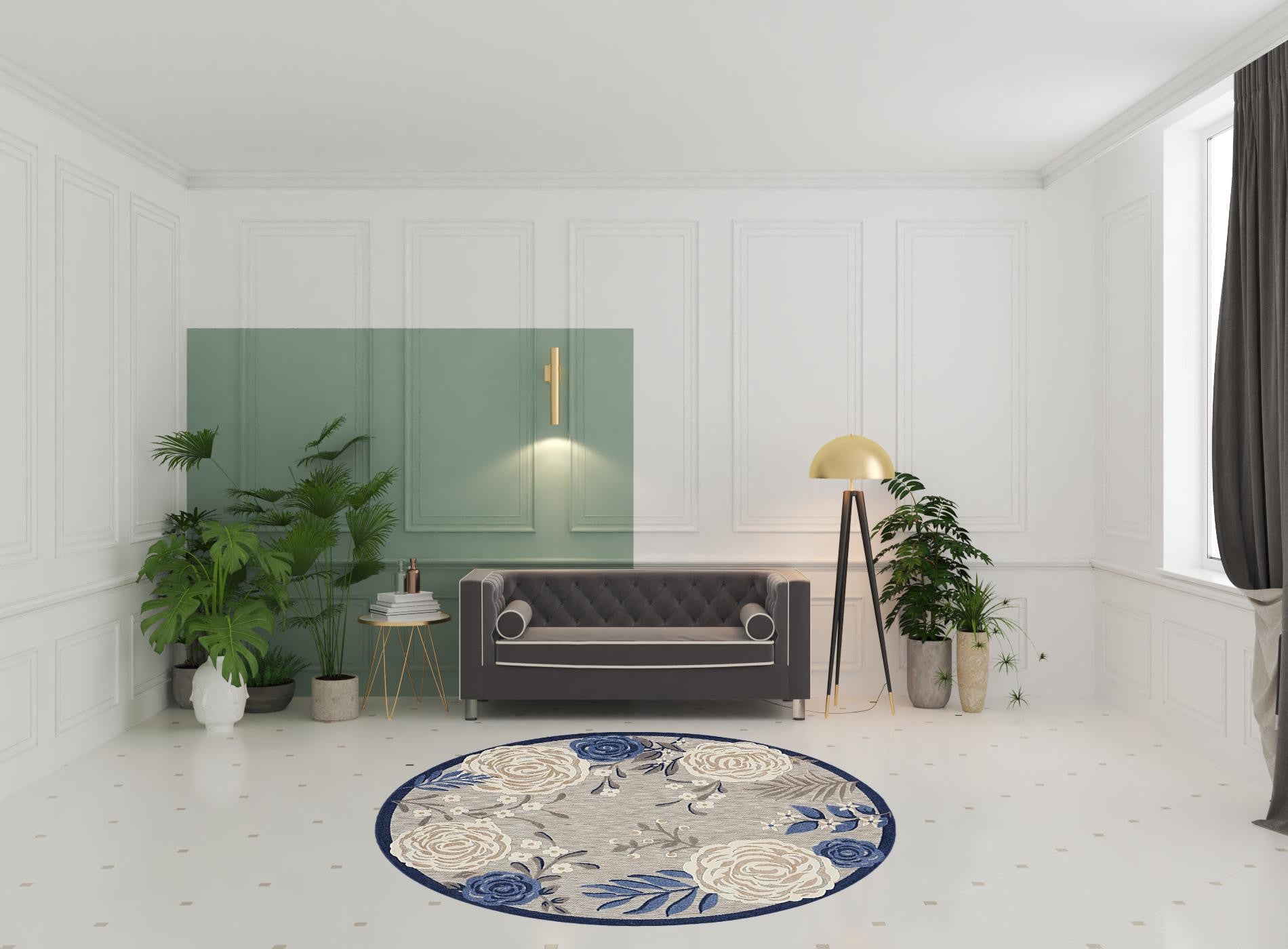 Add some artistry to your room with this 8' blue and orange round floral power loom area rug. This geometric round shaped rug features a floral pattern in blue and orange that combines a good looking print with a unique and updated shape. The mix of shape, color, and design gives this rug refreshing visual interest. Made in Turkey, this rug offers high quality combined with good looking designer sensibilities. Area Rugs help to give warmth and sense of home to your space. .25" H x 94.00" W x 94.00" D