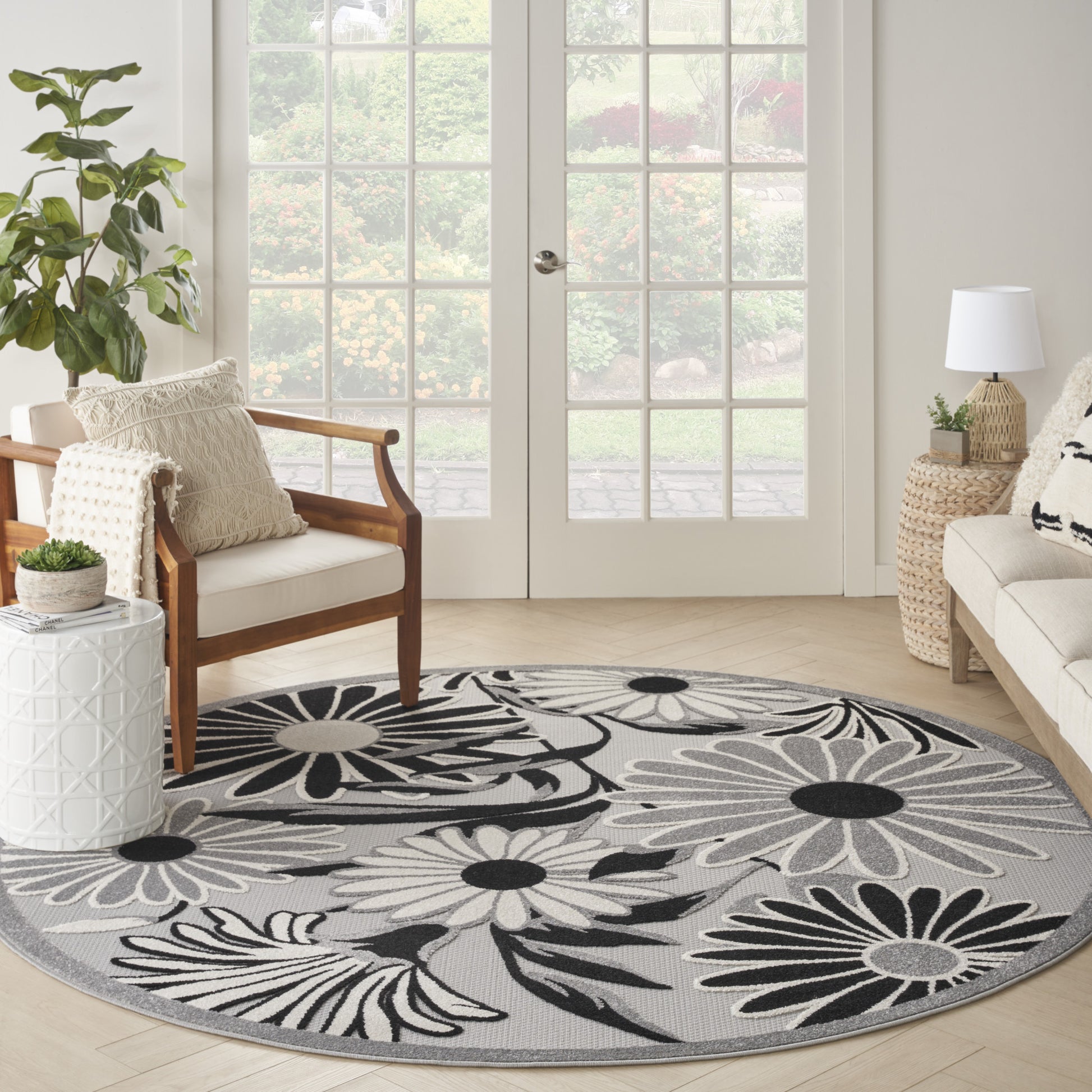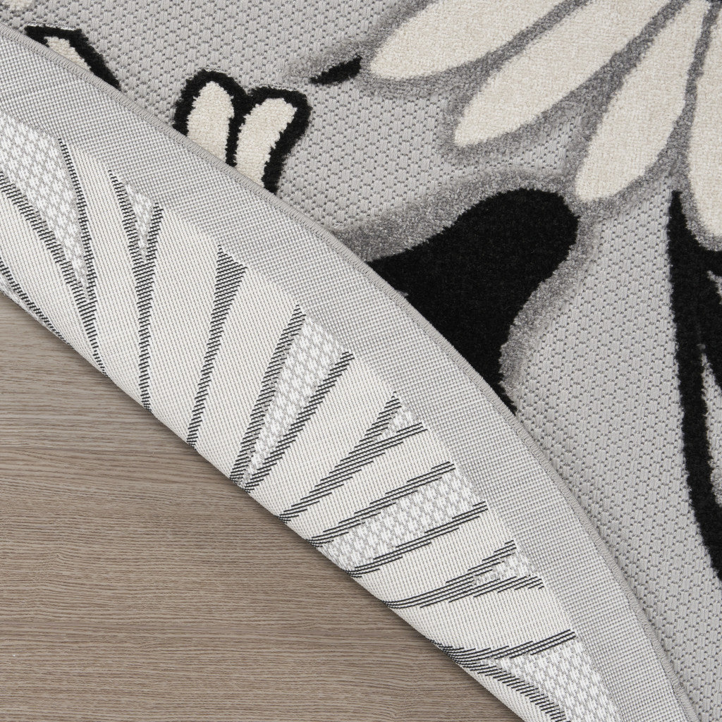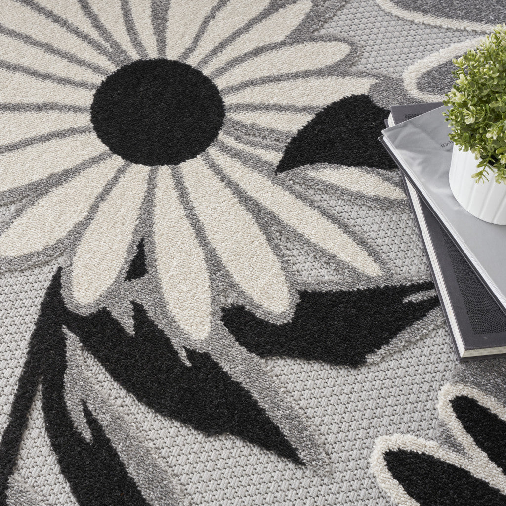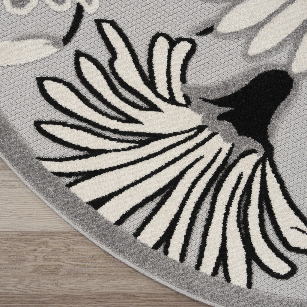 8' Blue and Orange Round Floral Power Loom Area Rug