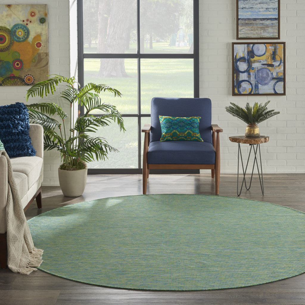 Add great coloration and comfortable texture to your space with this 8' blue round power loom area rug. This geometric round shaped rug features a solid color that combines hue and shape for a great look. Solid colors are versatile and will blend with any existing decor style. Made in Turkey, this rug offers high quality combined with good looking designer sensibilities. Place this area rug against a hardwood or tile floor and it will enliven your living space with style and sophistication. .25" H x 96" W x 96" D
