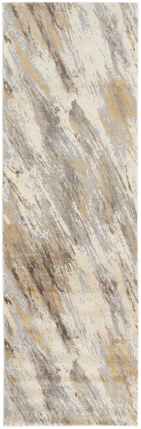 Add great coloration and comfortable texture to your space with this 8-foot brown and ivory abstract distressed runner rug. This runner shaped rug features a abstract design in brown and ivory to give it visual interest. A classic shape marries with good looking design for your space area rugs help to give warmth and sense of home to your space. 30-inch H x 96-inch W x 0.39-inch D