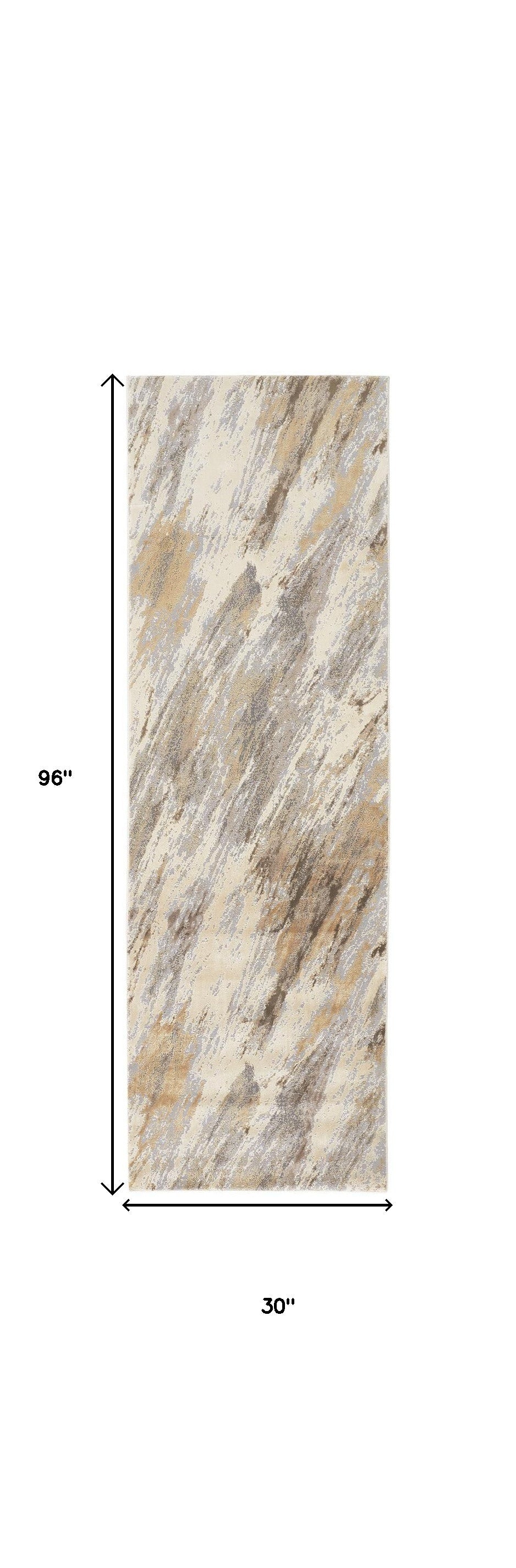 8' Brown and Ivory Abstract Distressed Runner Rug
