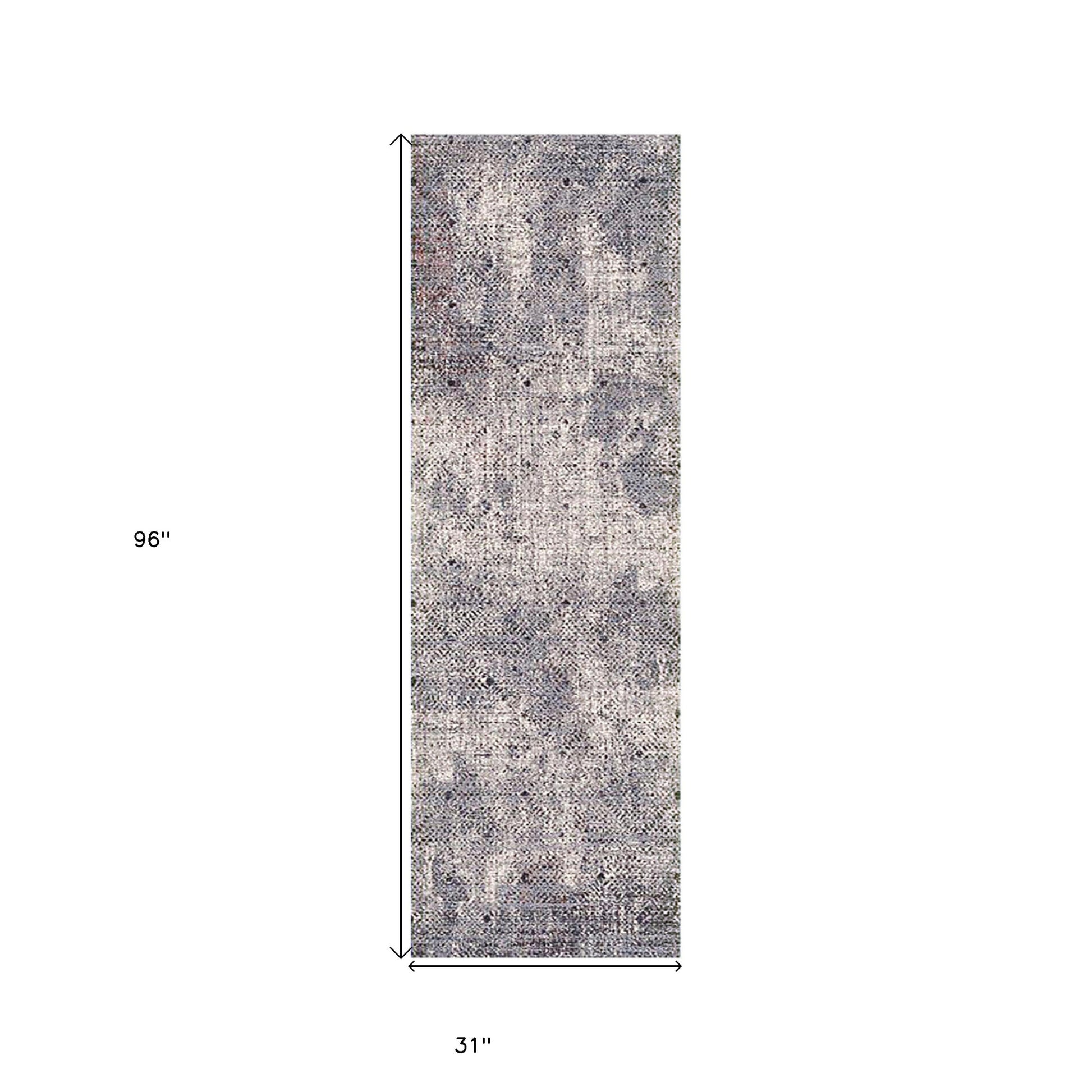 8' Gray and Ivory Abstract Power Loom Runner Rug