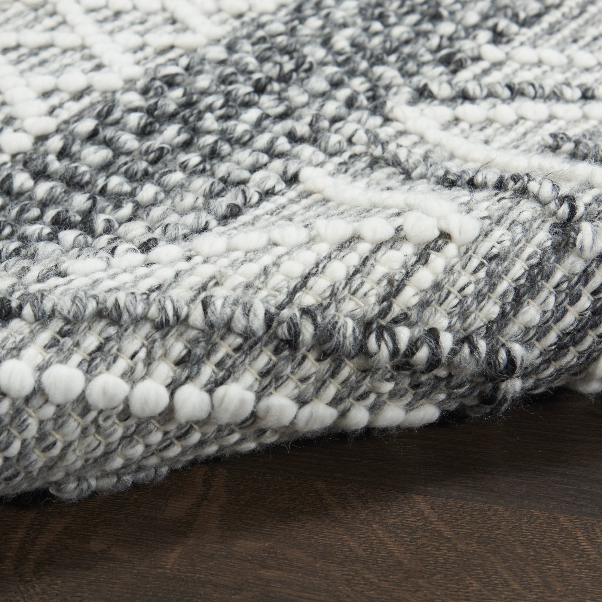 Add some artistry to your room with this 8-foot gray and ivory geometric hand woven runner rug with fringe. This runner shaped rug features a geometric design in gray and ivory to give it visual interest. A classic shape marries with good looking design for your space Tassel ends bring a timeless and fashionable look to your interior. Crafted by skilled artisans, this hand woven rug is genuine and unique. No two will be exactly alike. Area Rugs help to give warmth and sense of home to your space. .50-inch H x 27.00-inch W x 96.00-inch D