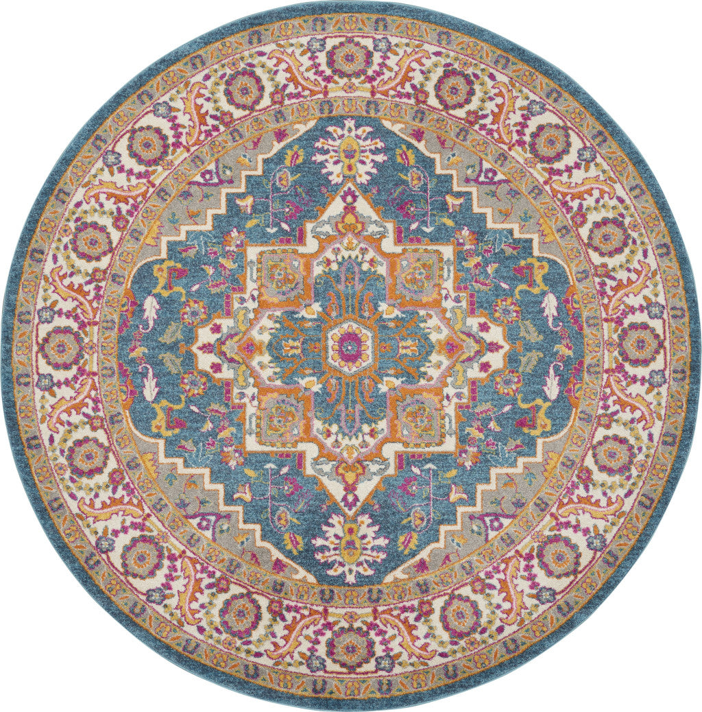 8' Gray Round Floral Power Loom Area Rug