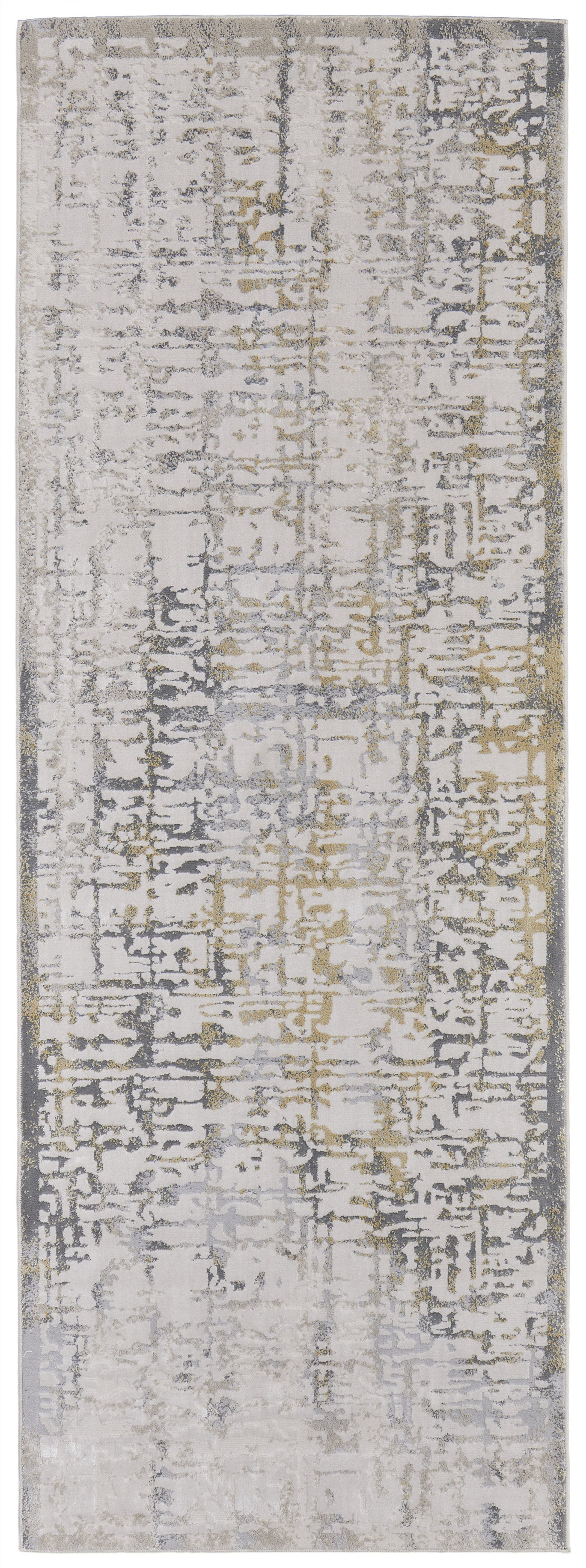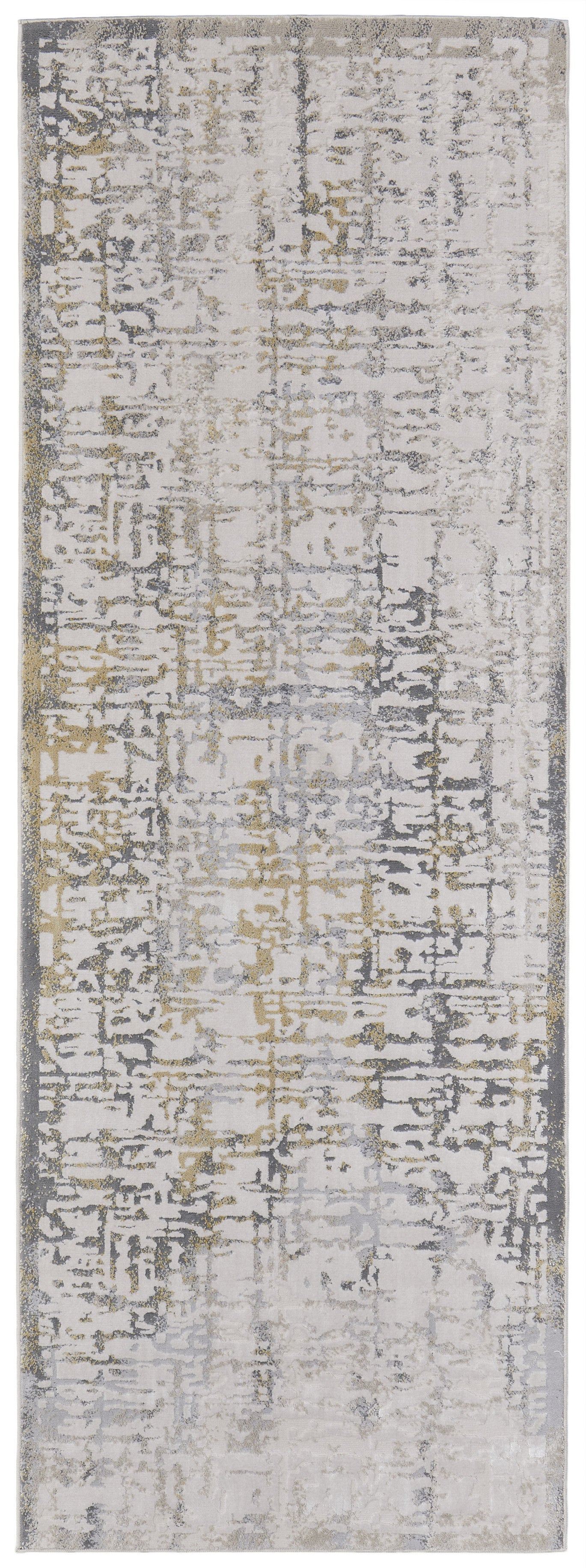8' Ivory and Gray Abstract Distressed Runner Rug