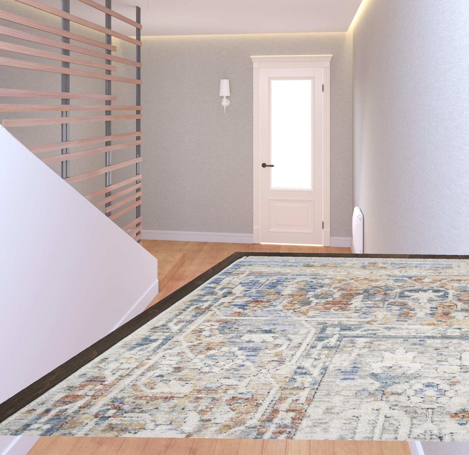 Add some artistry to your room with this 8-foot ivory blue and orange oriental power loom distressed runner rug. This runner shaped rug features a oriental design in ivory blue and orange to give it visual interest. A classic shape marries with good looking design for your space Place this area rug against a hardwood or tile floor and it will enliven your living space with style and sophistication. .25-inch H x 26.00-inch W x 96.00-inch D