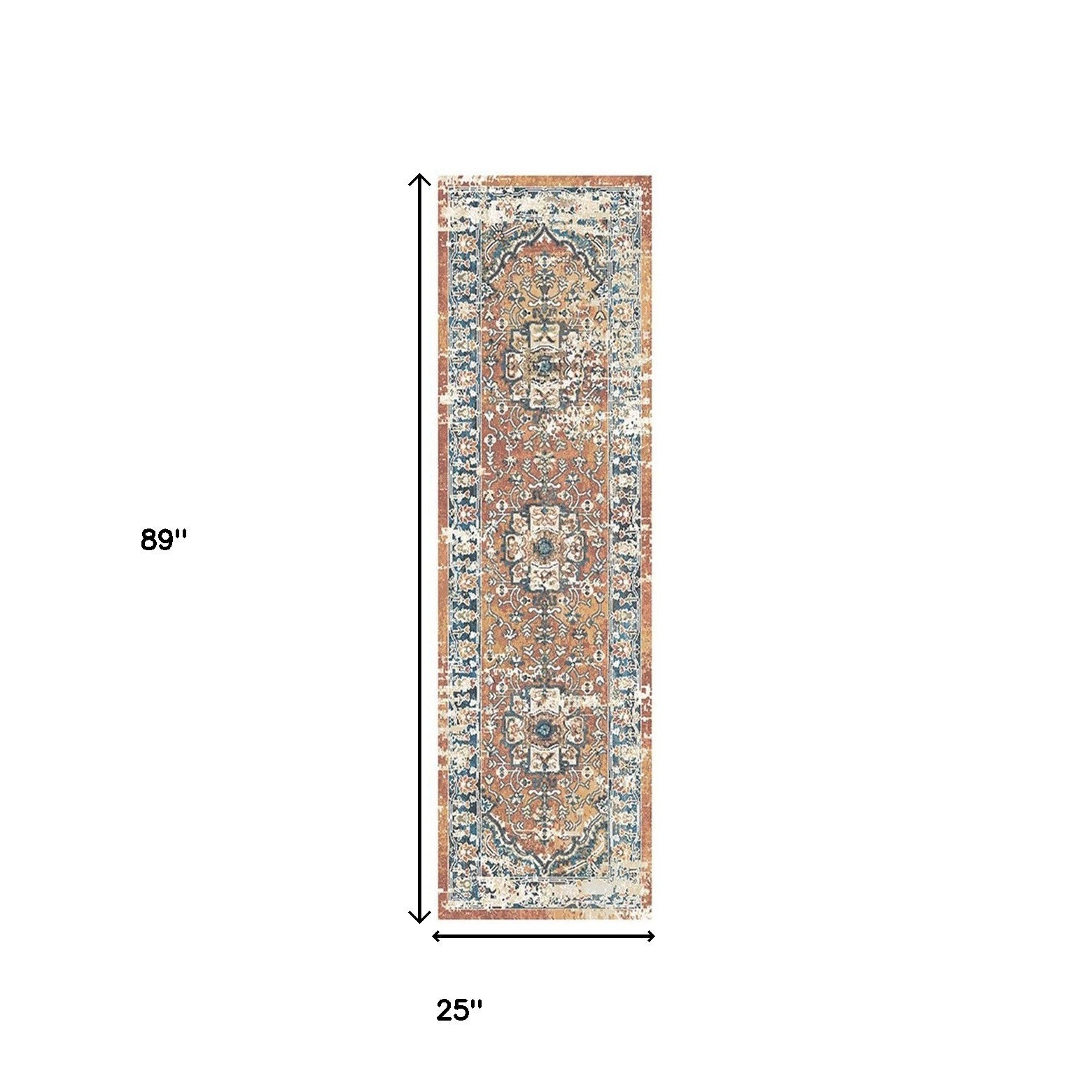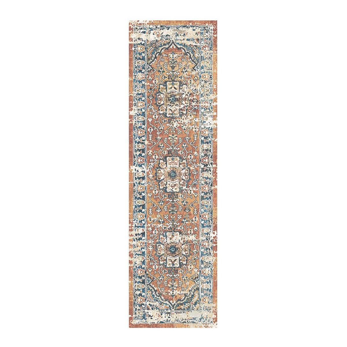 Add some artistry to your room with this 8-foot rust oriental distressed runner rug with fringe. This runner shaped rug features a oriental design in rust to give it visual interest. A classic shape marries with good looking design for your space ideal for spaces with kids and pets, this rug is stain resistant to help repel stains and spilled liquids. Tassel ends bring a timeless and fashionable look to your interior. Place this area rug against a hardwood or tile floor and it will enliven your living space with style and sophistication. 25-inch H x 89-inch W x 0.39-inch D