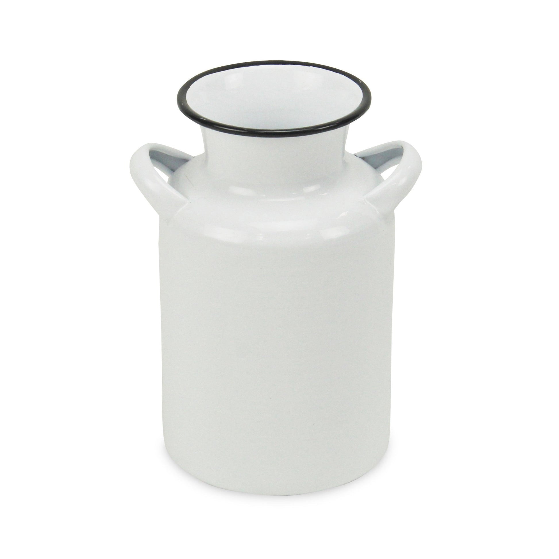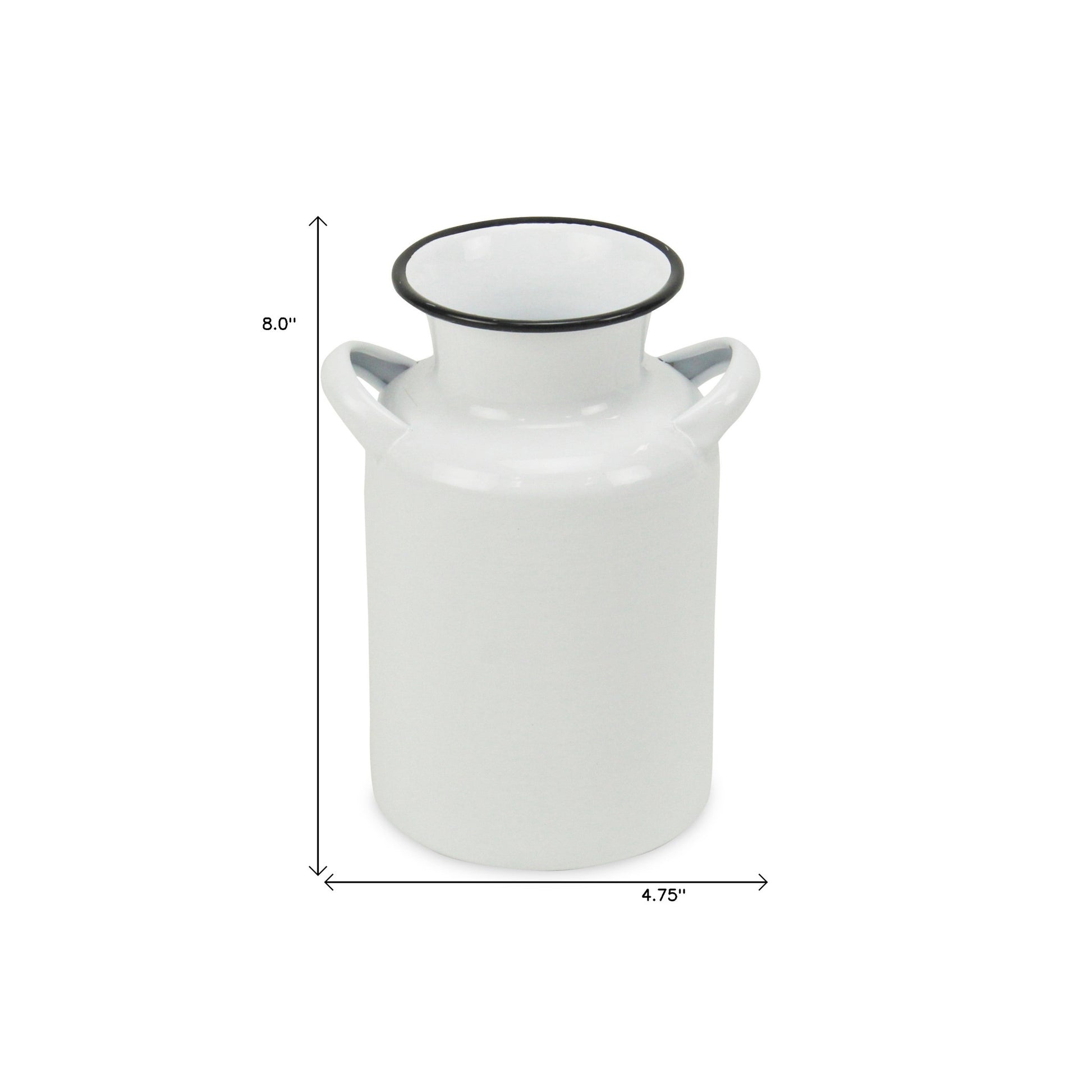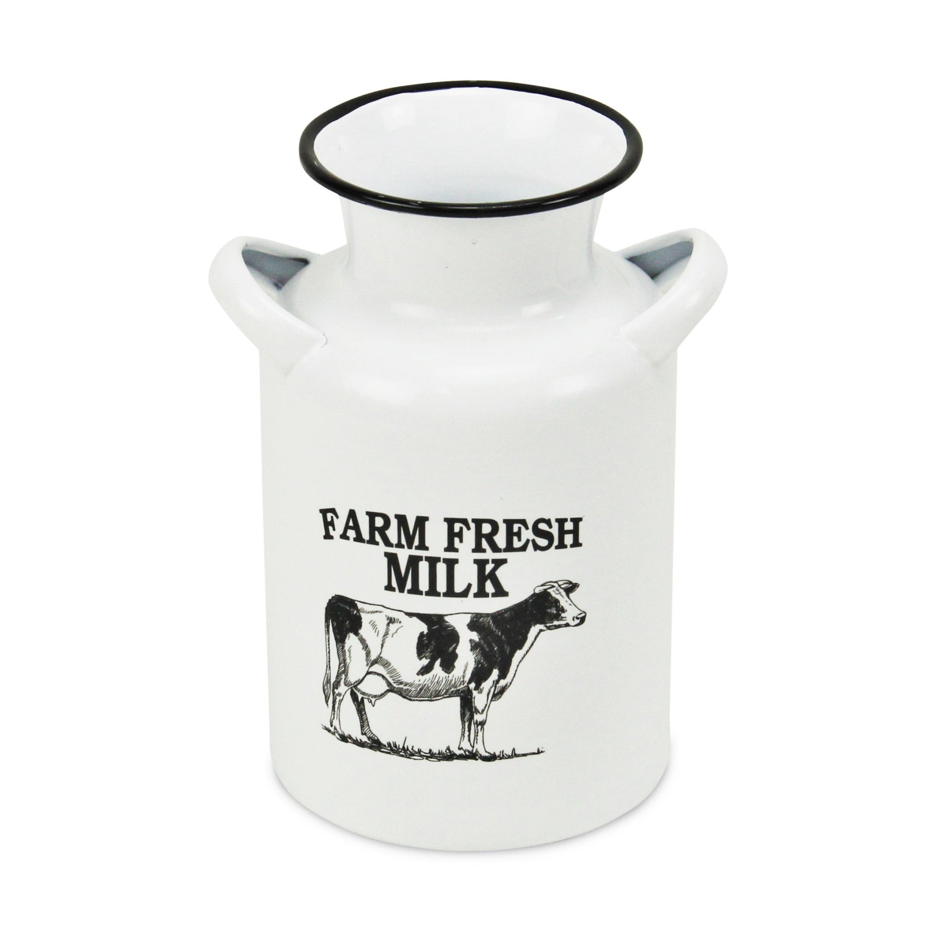 Unique and decorative, this 8-inch white and black metal rustic cow decorative milk jug will leave a lasting impression. The farmhouse cow design with "farm fresh" wording is just the right touch for that vintage country look. A perfect decorative addition for anyone who loves a crafty/country look and feel. 8-inch H x 4.75-inch W x 4.75-inch D