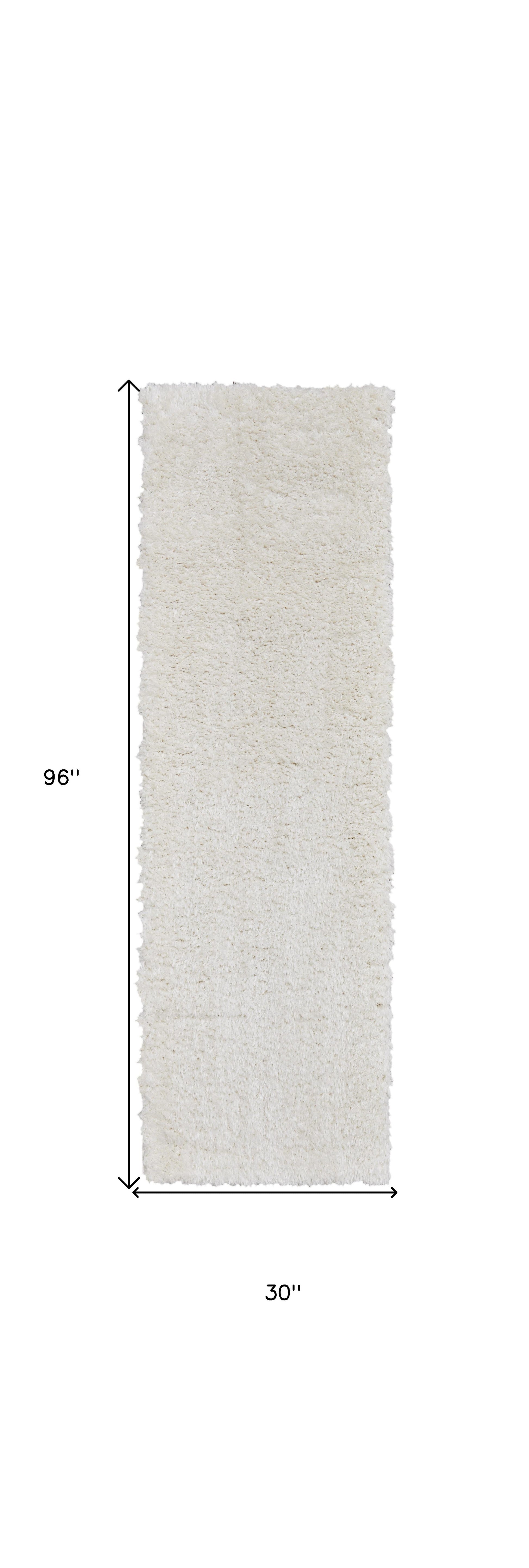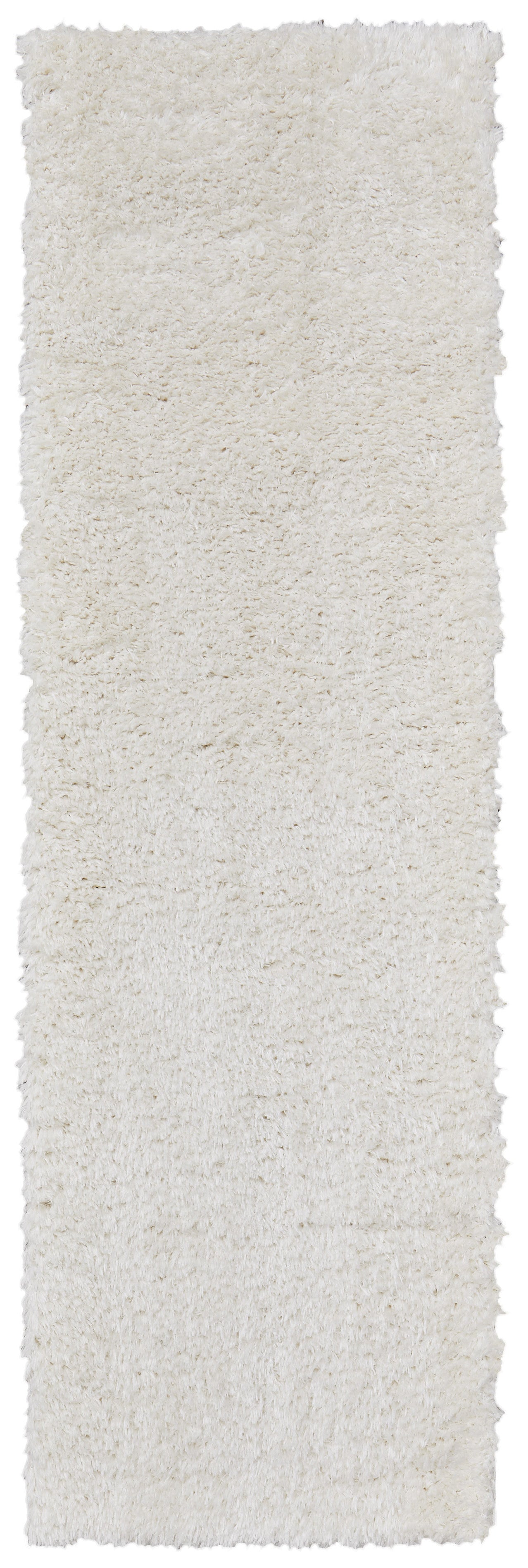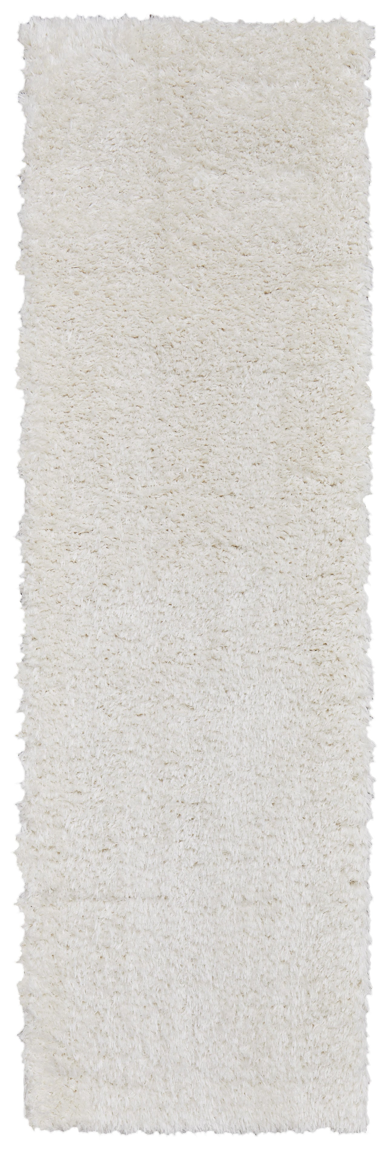 Add great coloration and comfortable texture to your space with this 8-foot white shag power loom runner rug. This runner shaped rug flaunts a white color that will be a great way to accent your space. Solid colors are versatile and will blend with any existing decor style. The coloring of this rug adds a delightfully neutral tone to your home and will easily match with most any decor. Ideal for spaces with kids and pets, this rug is stain resistant to help repel stains and spilled liquids. The retro shag construction of this luxurious rug will provide a soft and comfortable barrier to color tile and hardwood floors. Area rugs help to give warmth and sense of home to your space. 30-inch H x 96-inch W x 2.09-inch D