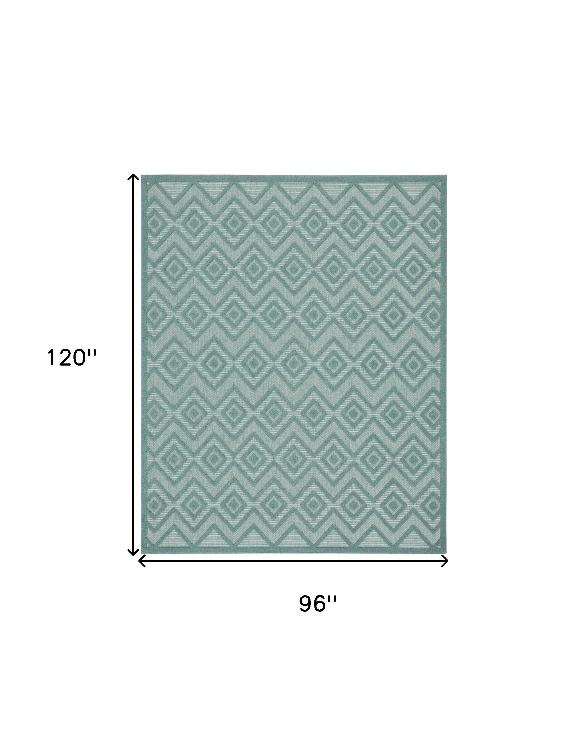 Add great coloration and comfortable texture to your space with this 8' x 10' aqua geometric flatweave area rug. This rectangle shaped rug features a geometric design in aqua to give it visual interest. A classic shape marries with good looking design for your space This superior Turkish rug represents the highest quality and is built to last. Area Rugs help to give warmth and sense of home to your space. .30" H x 96.00" W x 120.00" D